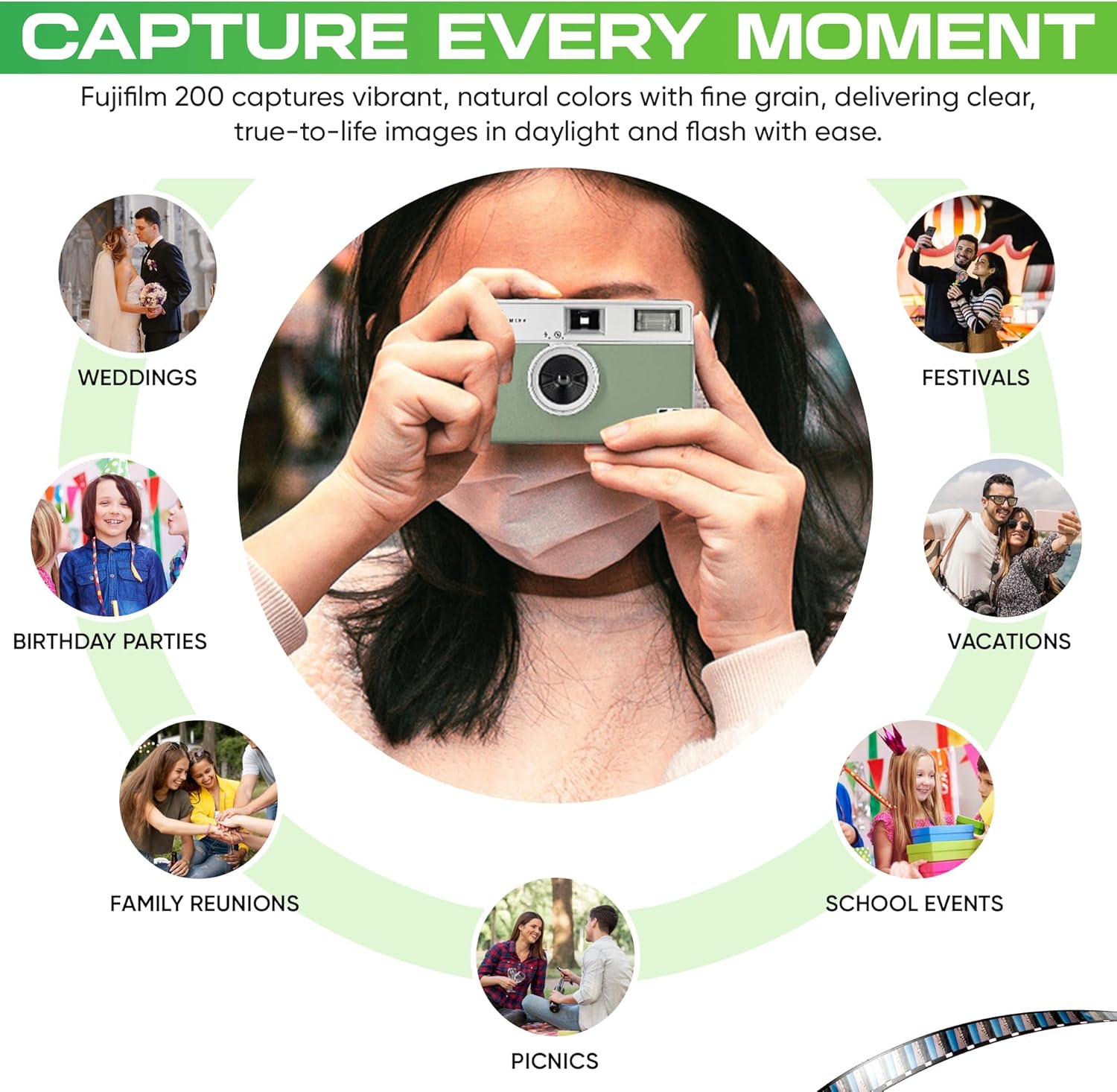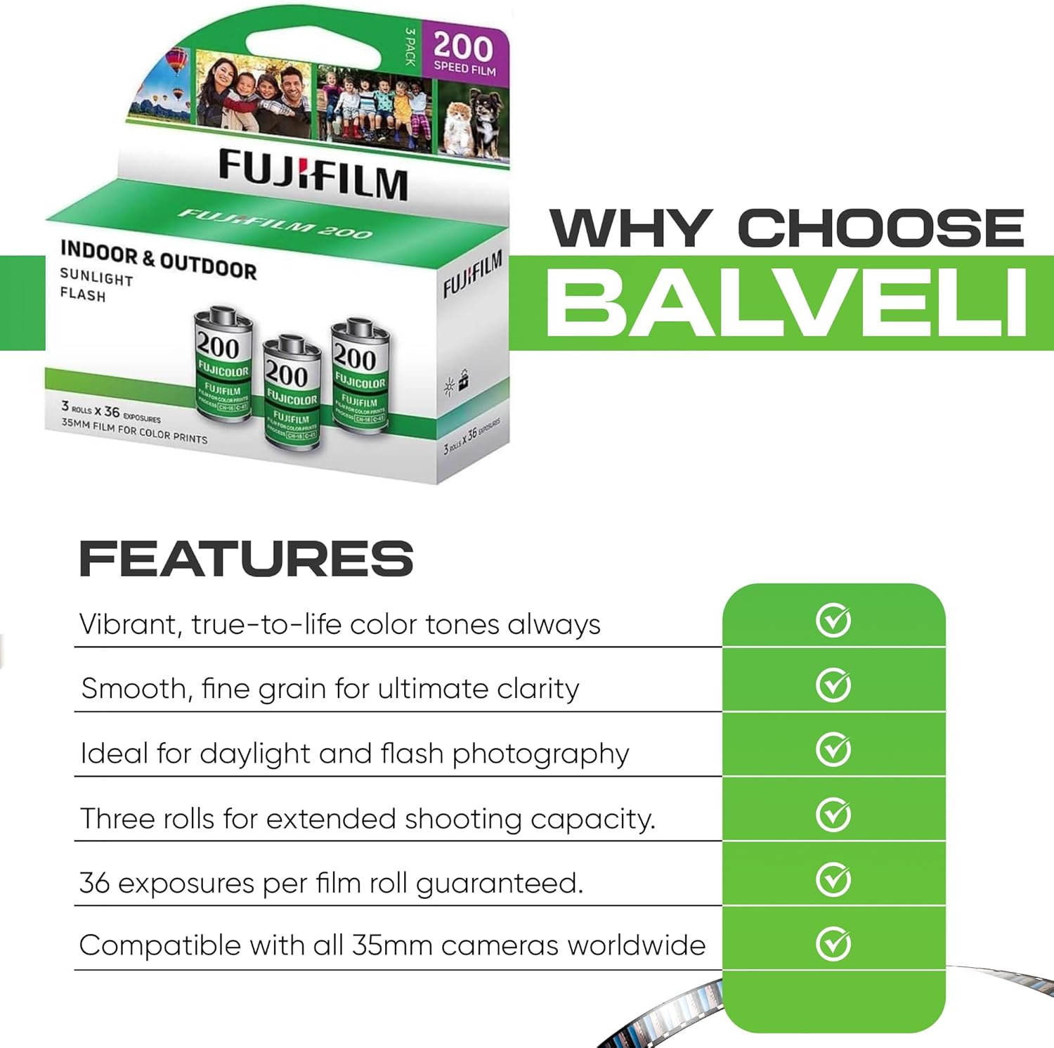200 35mm Film Bundle, 6 Rolls (2x3 Pack) 36 Exp Each, Includes Premium Balveli Microfiber Cleaning Cloth -Fuji 35 mm Film Roll for Film Camera 35mm-fujifilm - Fuji 200