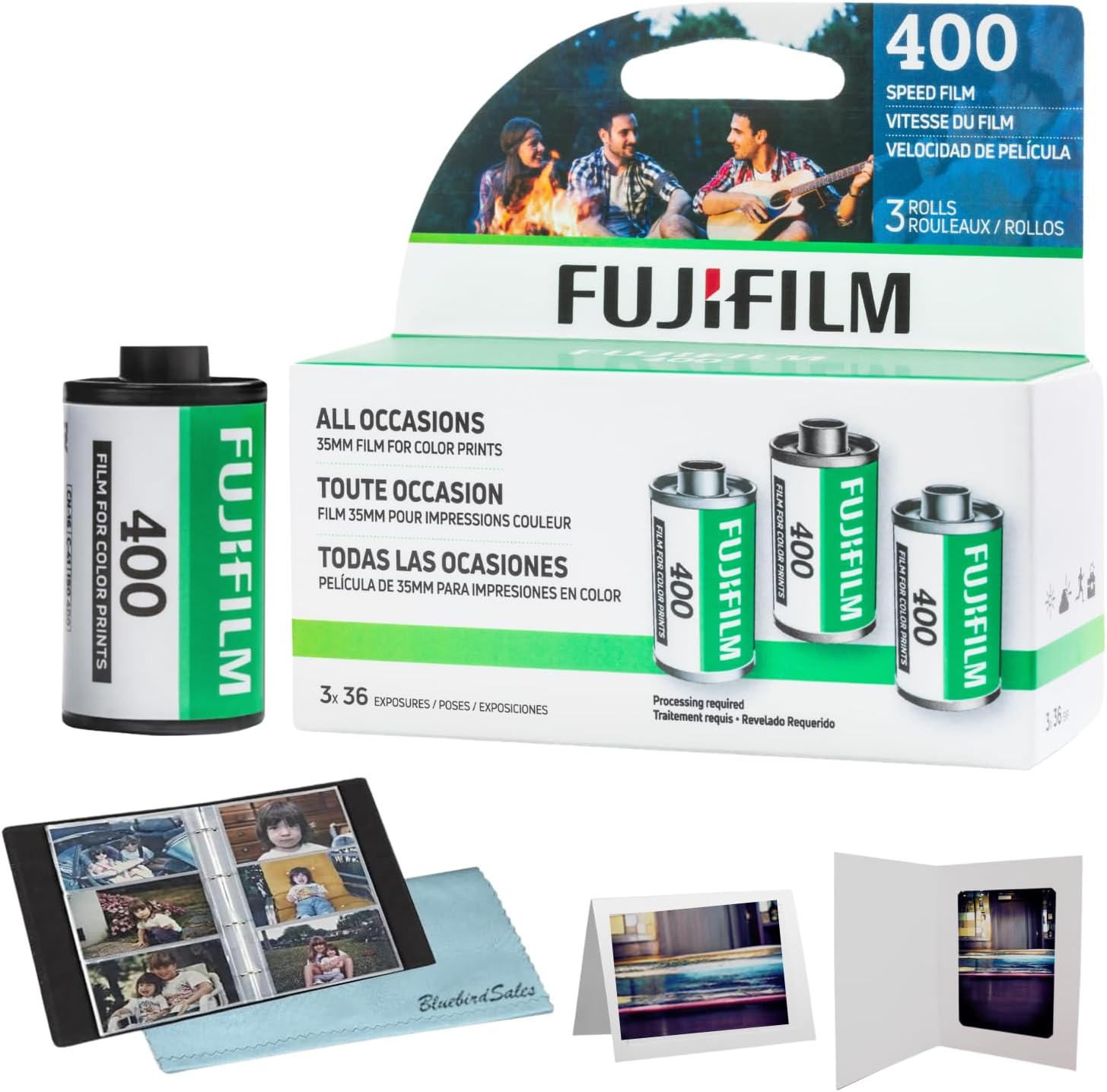 FUJIFILM 400 Color Negative Film (35mm Roll Film, 36 Exposures, 3-Pack) + BluebirdSales Photo Album, Photo Frames (10 Frames) + Microfiber Cleaning Cloth