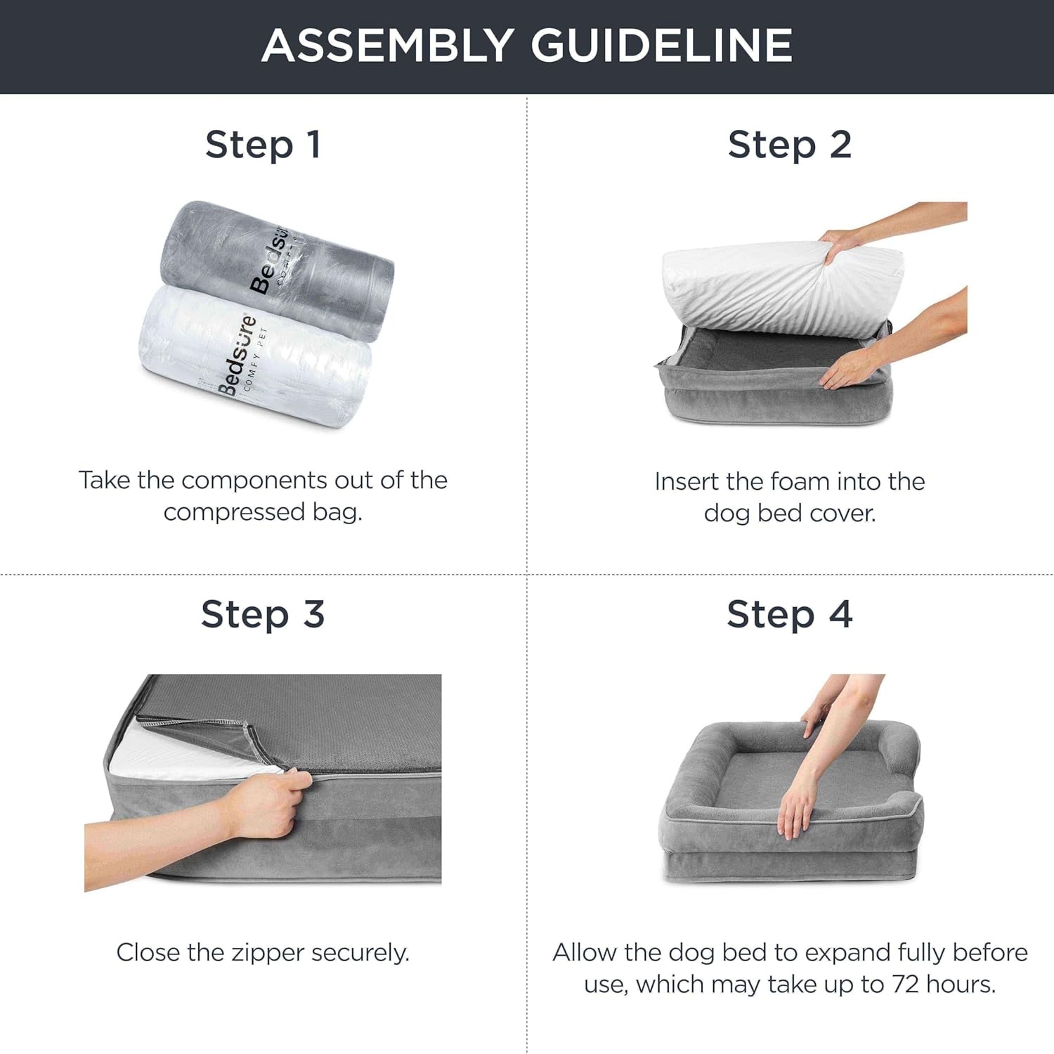 Bedsure Letto per Cani Grande 89x63x18cm - Divano per Cani Taglia Gande in Uovo Foam, Colore Grigio, Cuscino per Cani Sfoderabile e Lavabile