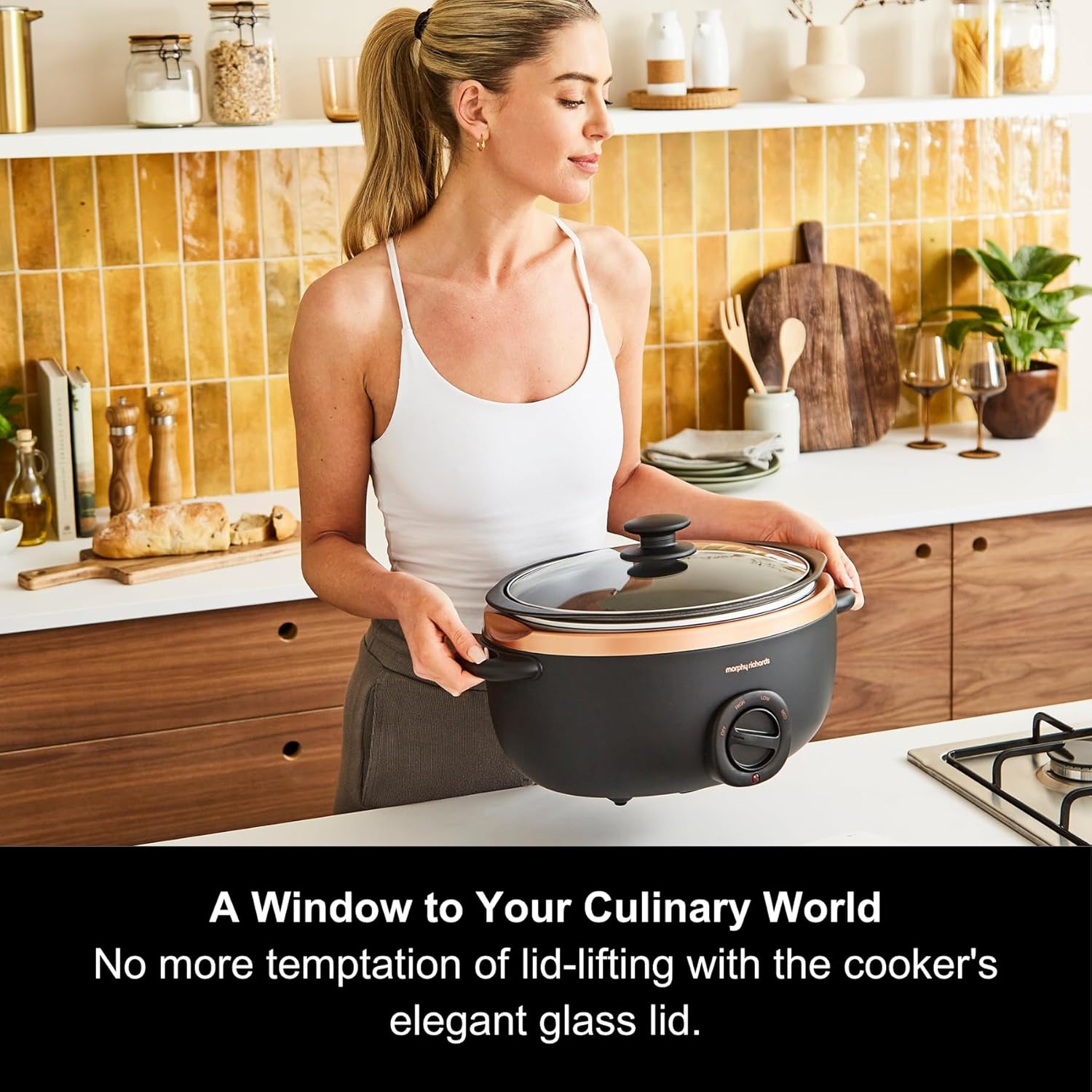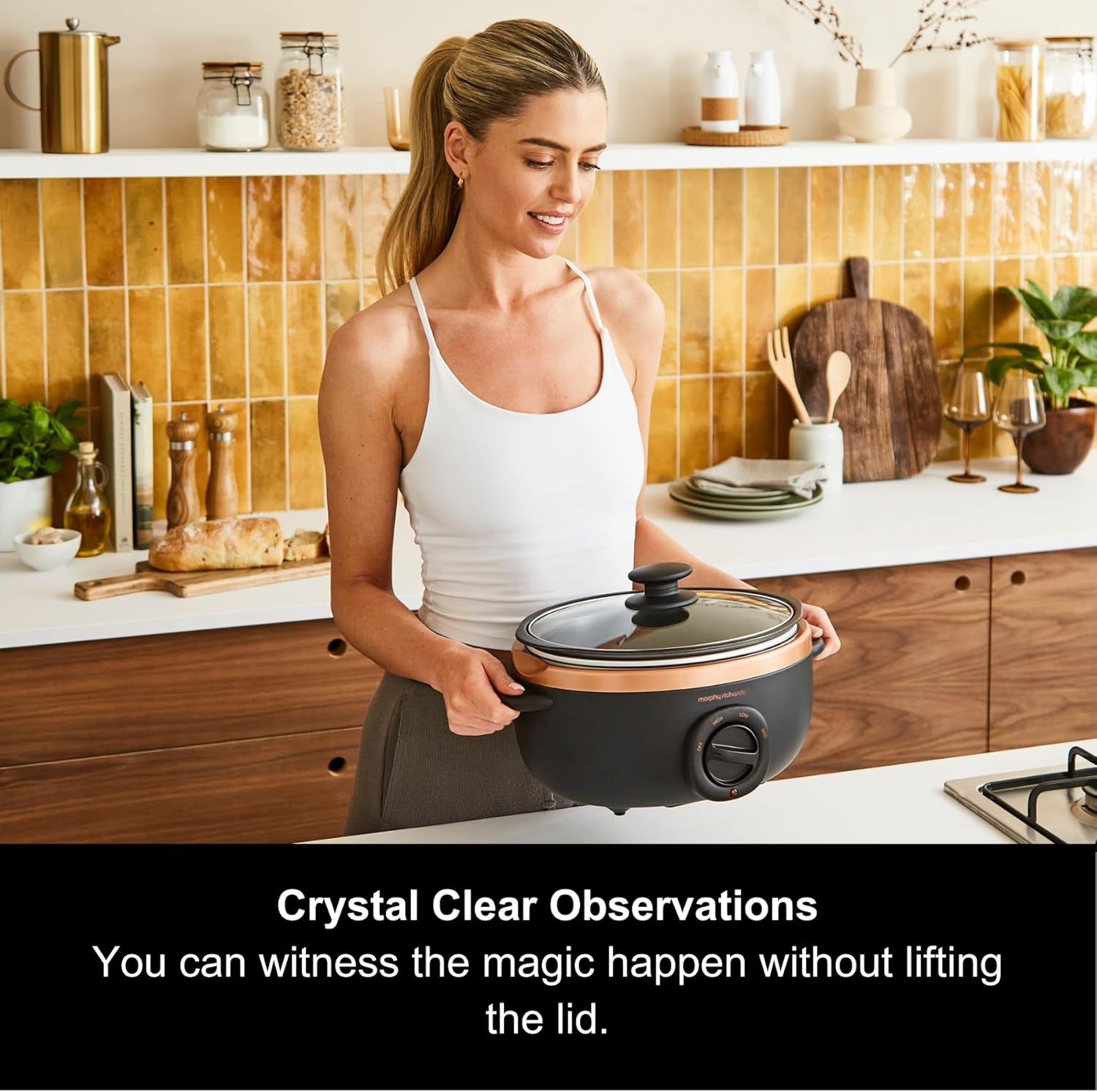 Morphy Richards 460016EE Sear & Stew 460016EE Steaming Pot, 3.5 L, Rose Gold, Glass