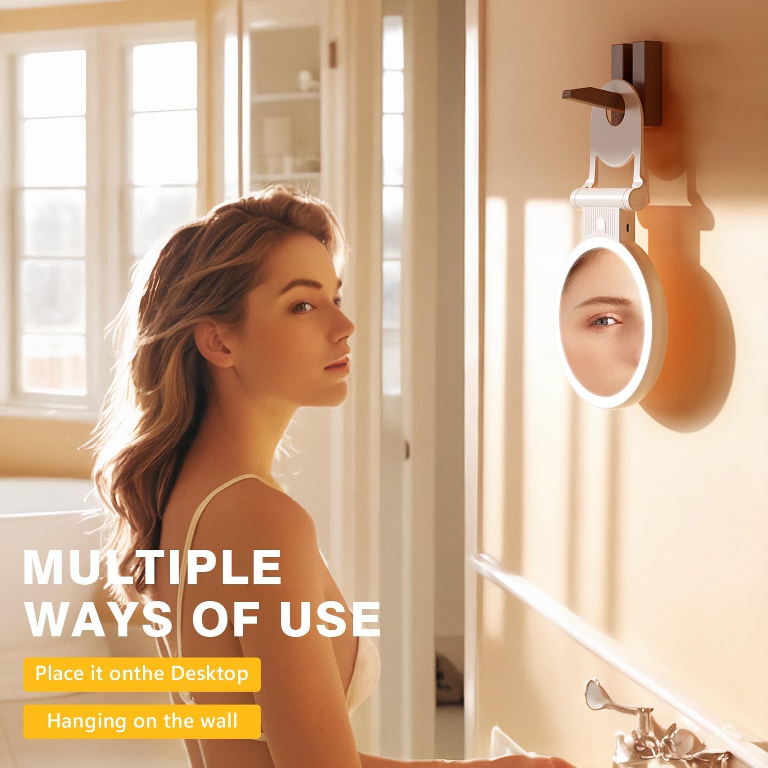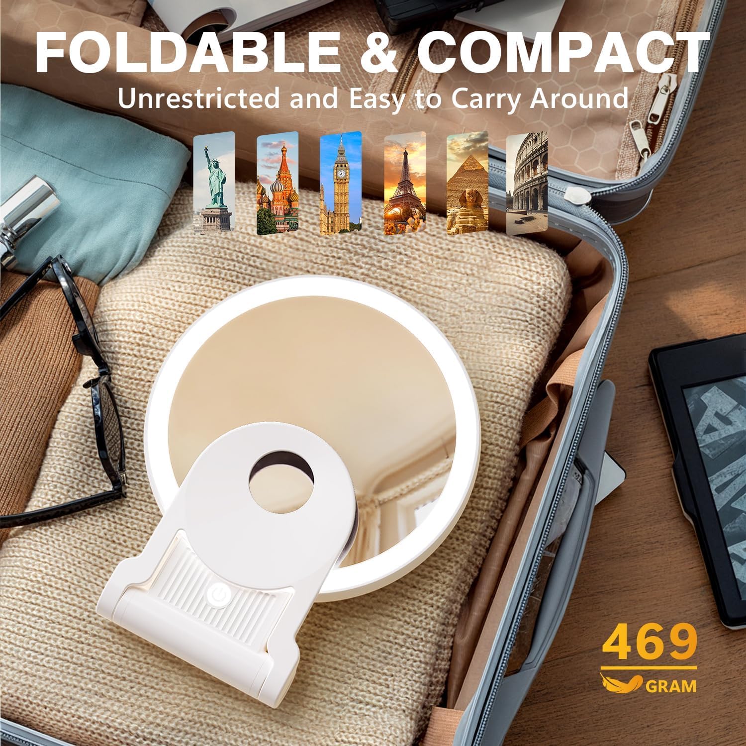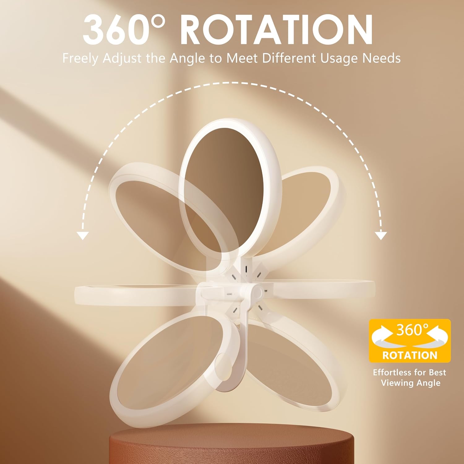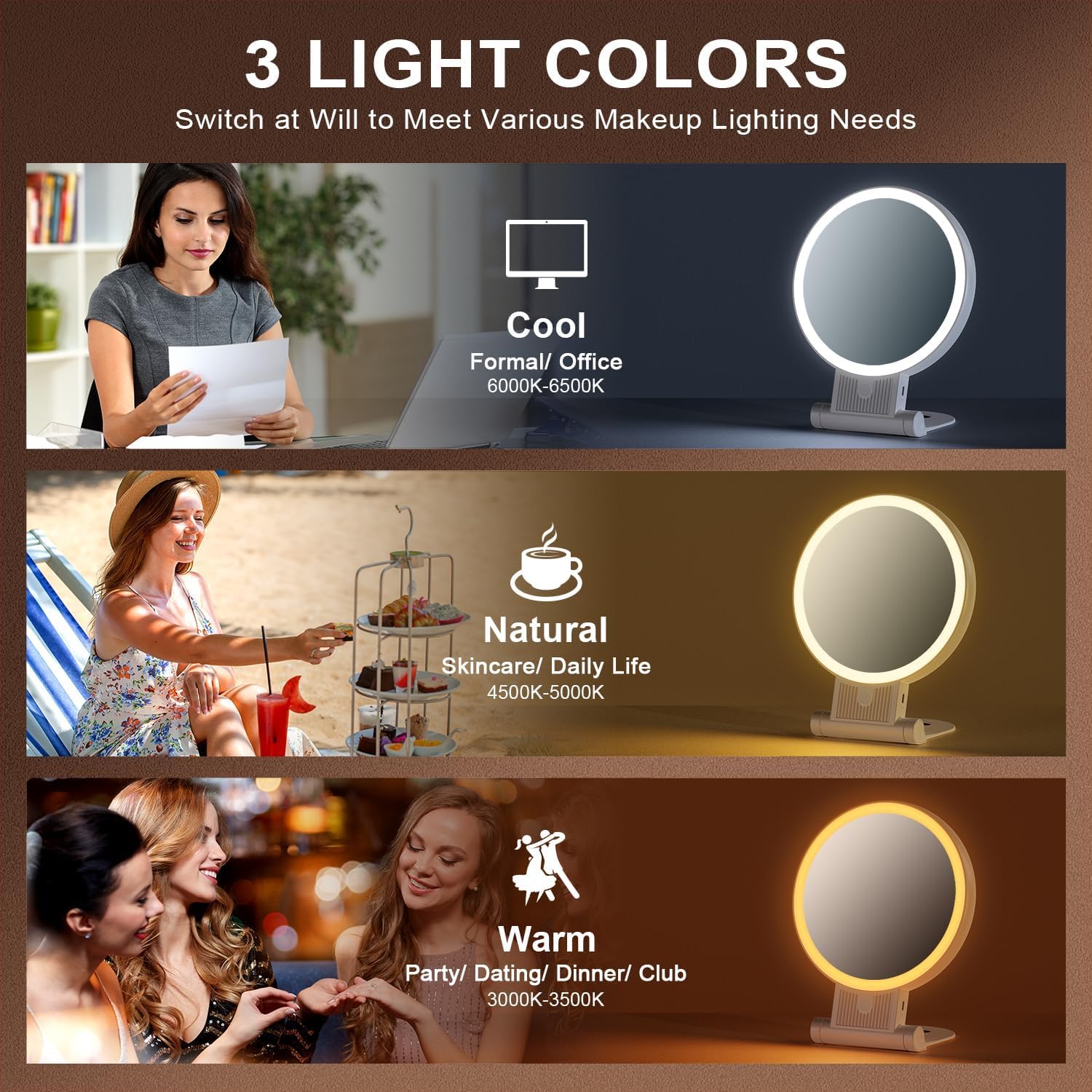 Auxmir Specchio Trucco con Luci LED, Specchio Ingranditore 30X/1X a Doppio Lato, Luminosità Regolabile a 3 Colori, Specchio da Tavolo Pieghevole con Foro per Appendere, Ricaricabile e Portatile