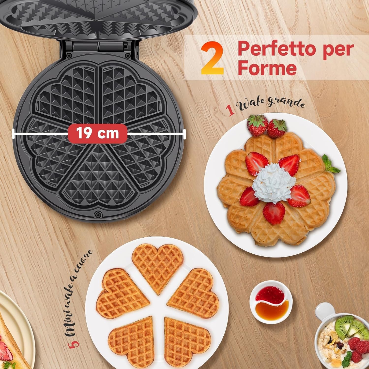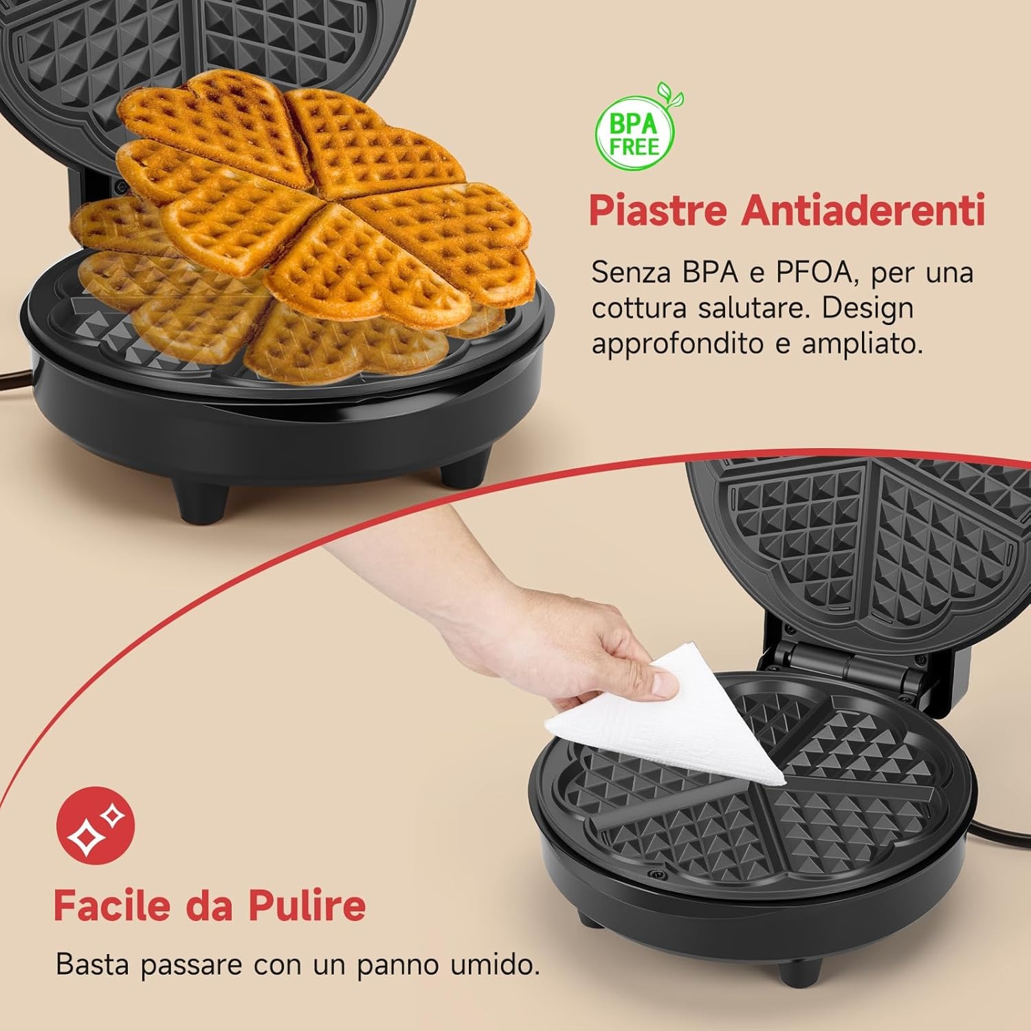 Aigostar Macchina per Waffle a 5 Cuori, 1000W, Piastre Antiaderenti da 19 cm, Cottura Regolabile, Indicatore LED, Maniglie Antiscottatura, Design Compatto in Acciaio Inossidabile, BPA FREE, Crunchy