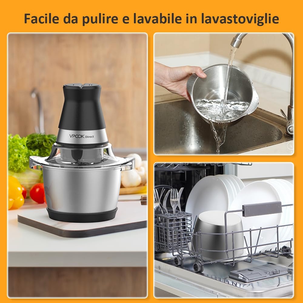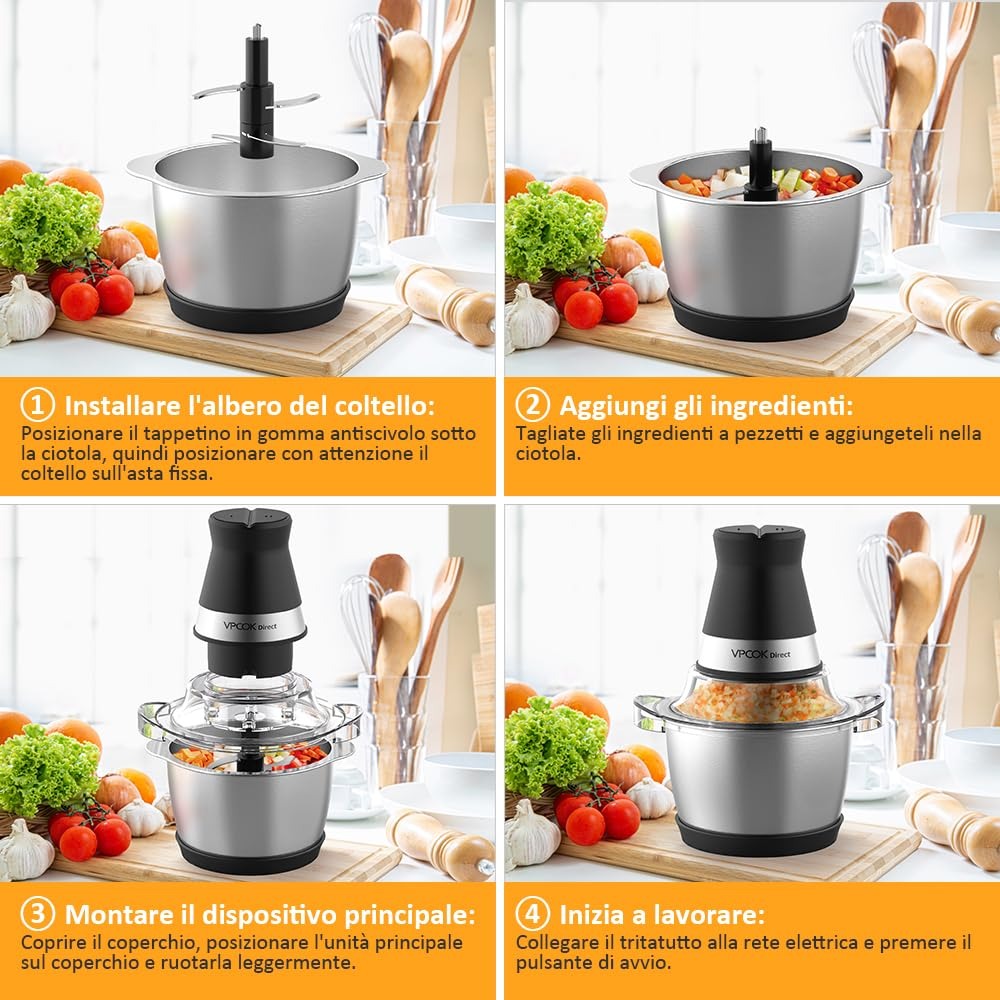 Frullatore Tritatutto Impastatrici Mixer da Cucina Elettrico Multifunzione con 4 Lame in Acciaio Inossidabile 1,2 L 400w