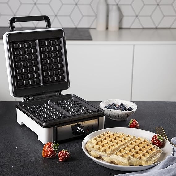 Princess Waffle Iron 132397, a forma di waffle belga, 1200 Watt, lunghezza del cavo 0,75 m, teglia 19,8 x 19,5 cm, livello di calore regolabile, rivestimento antiaderente, Argento/Nero,
