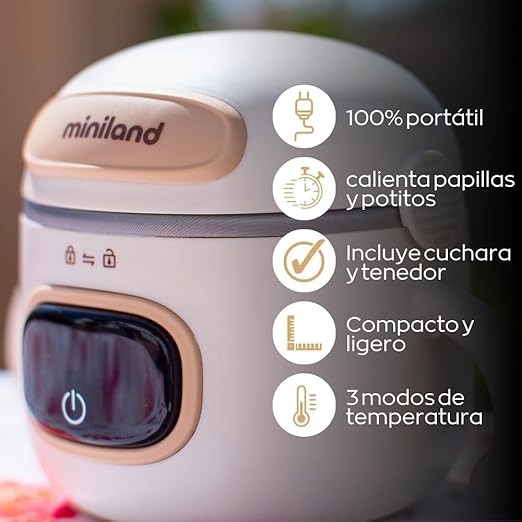 Miniland - Scaldabagno portatile Warmy Food On the Go, batteria ricaricabile, con cavo, posate e scatola