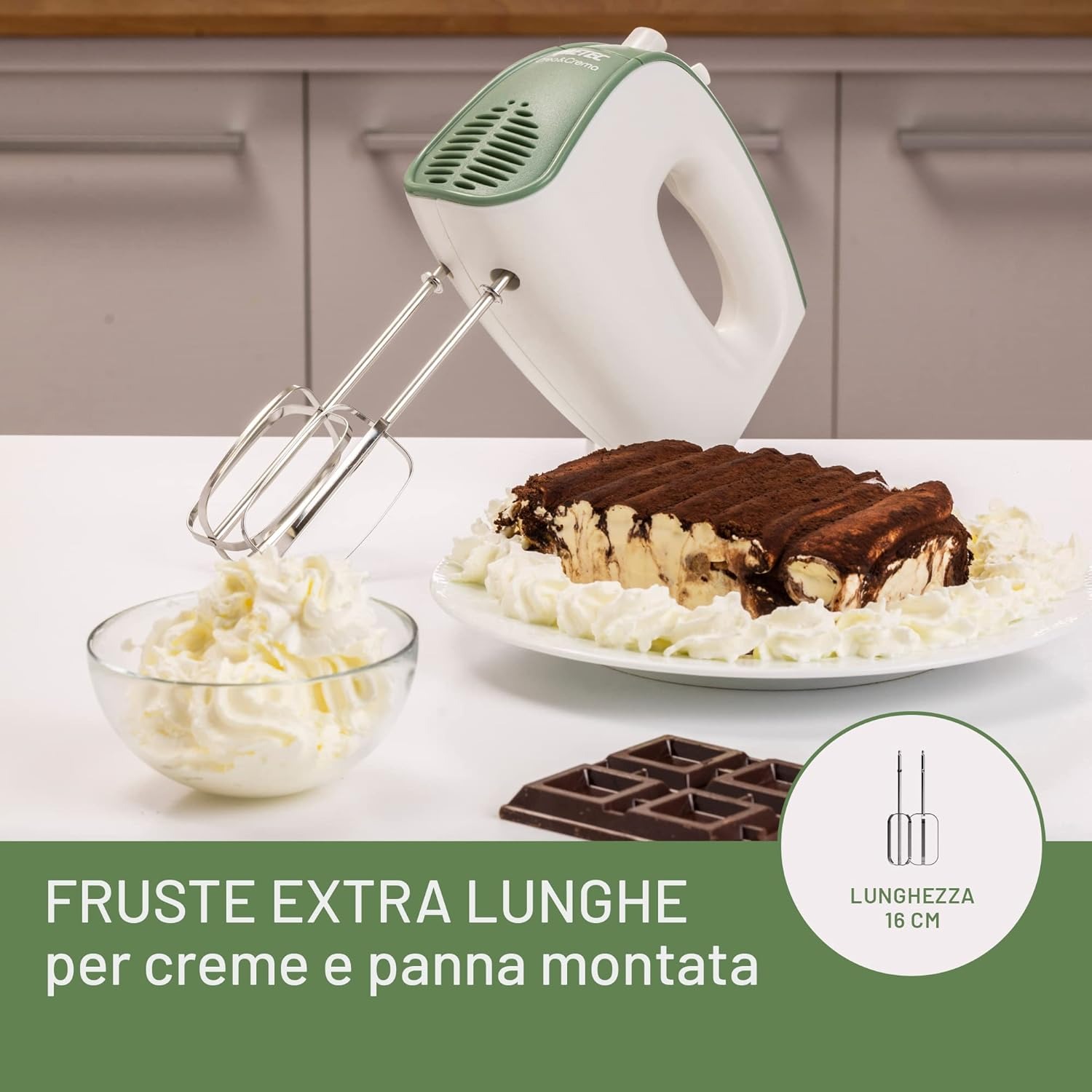 Imetec Crea&Crema sbattitore elettrico, Fruste extralunghe per impasti dolci e panna montata, Ganci acciaio inox per impastare, 5 velocità, Funzione turbo, Design ergonomico, 500 w