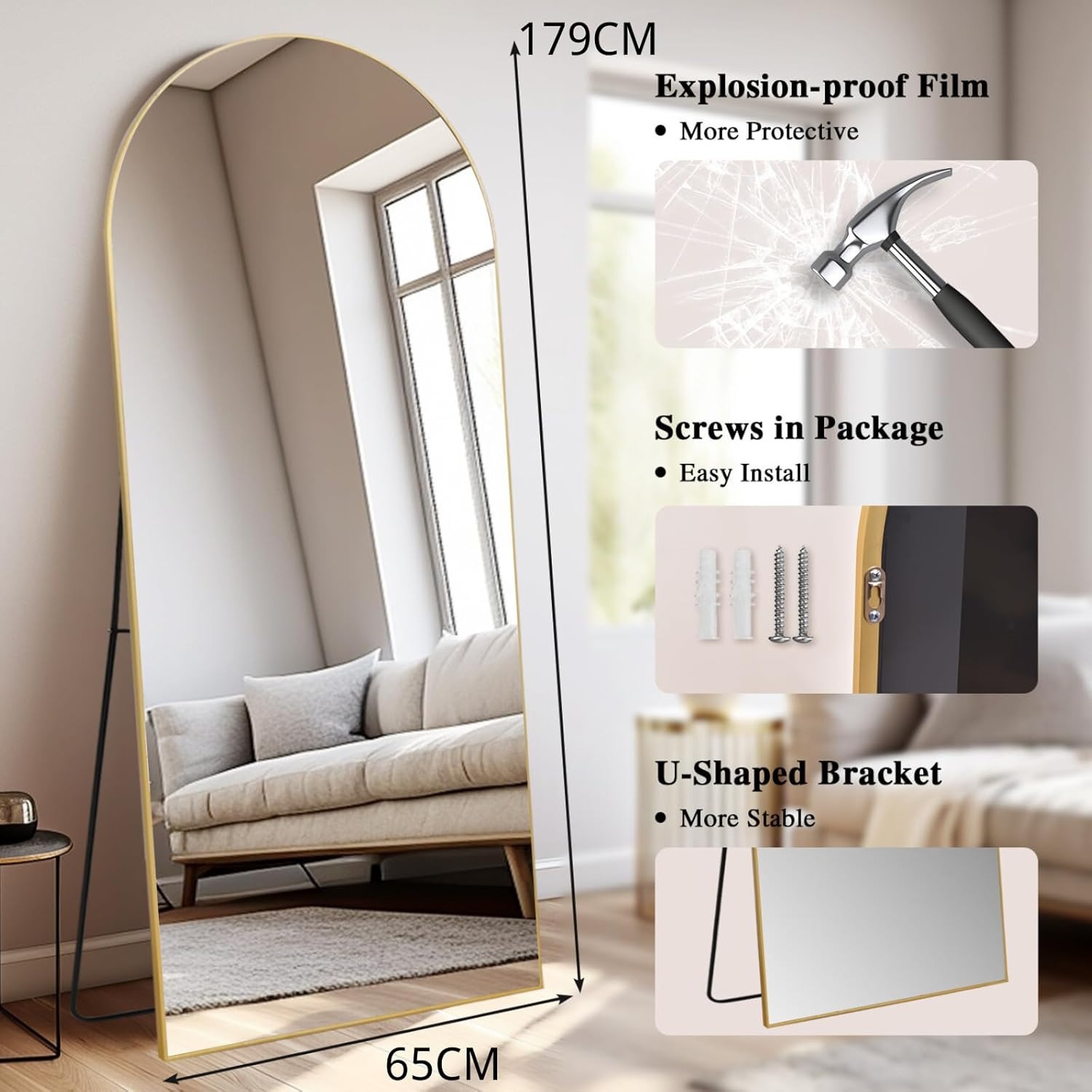 LunaMirror Specchio curvo per tutto il corpo, 179 x 65 cm, grande specchio da pavimento, per camera da letto, soggiorno, corridoio, ingresso da parete, oro
