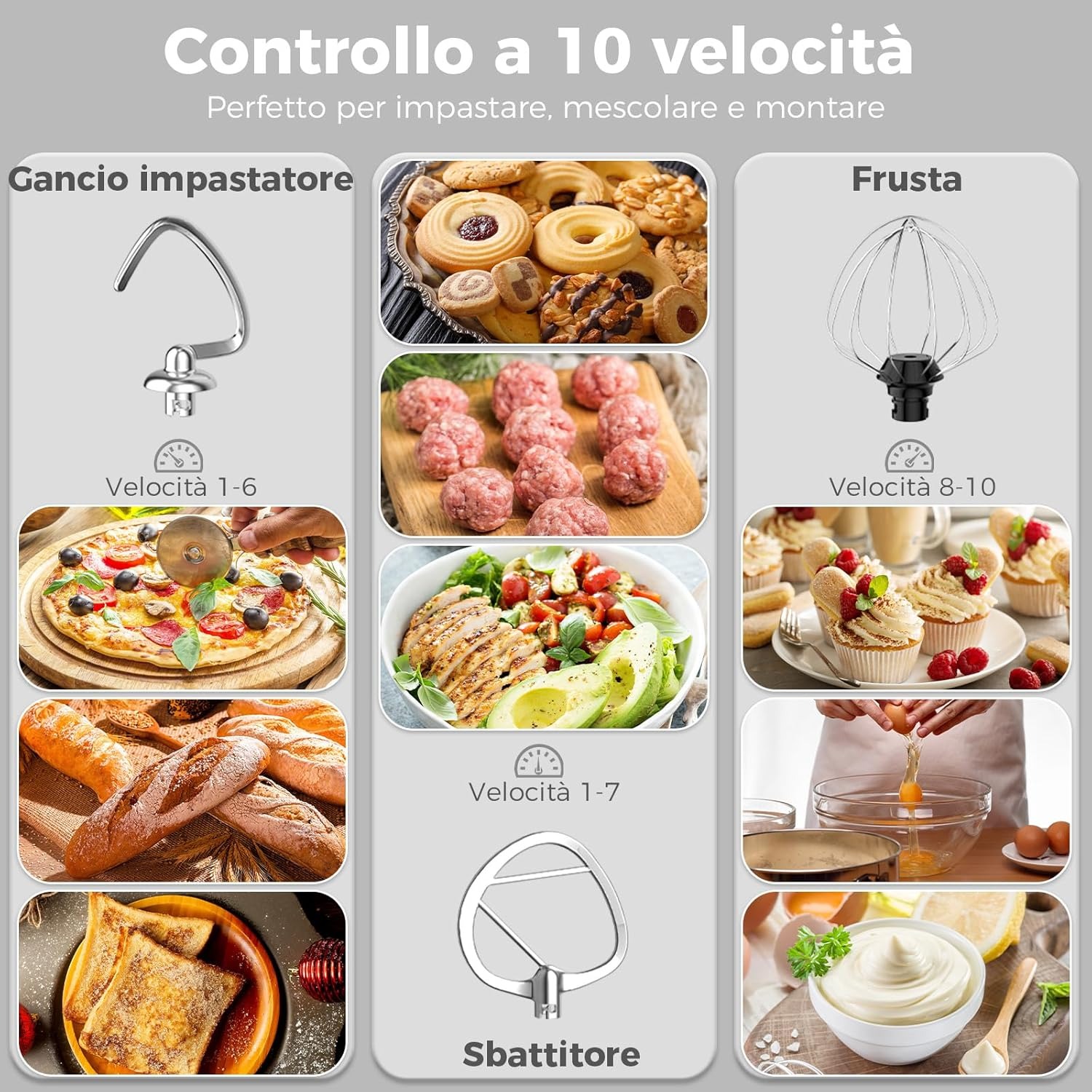 YASHE Impastatrice Planetaria 1500W, 2 Ciotole in Acciaio Inox 4,5L + 5L, 10+P Velocità, Testa Inclinabile, con Gancio Impastatore, Frusta e Sbattitore, Nero
