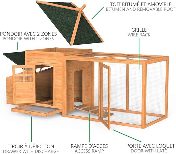 VOUNOT® Pollaio in Legno, Pollaio per Galline ovaiole da Esterno, 190 x 100 x 55cm