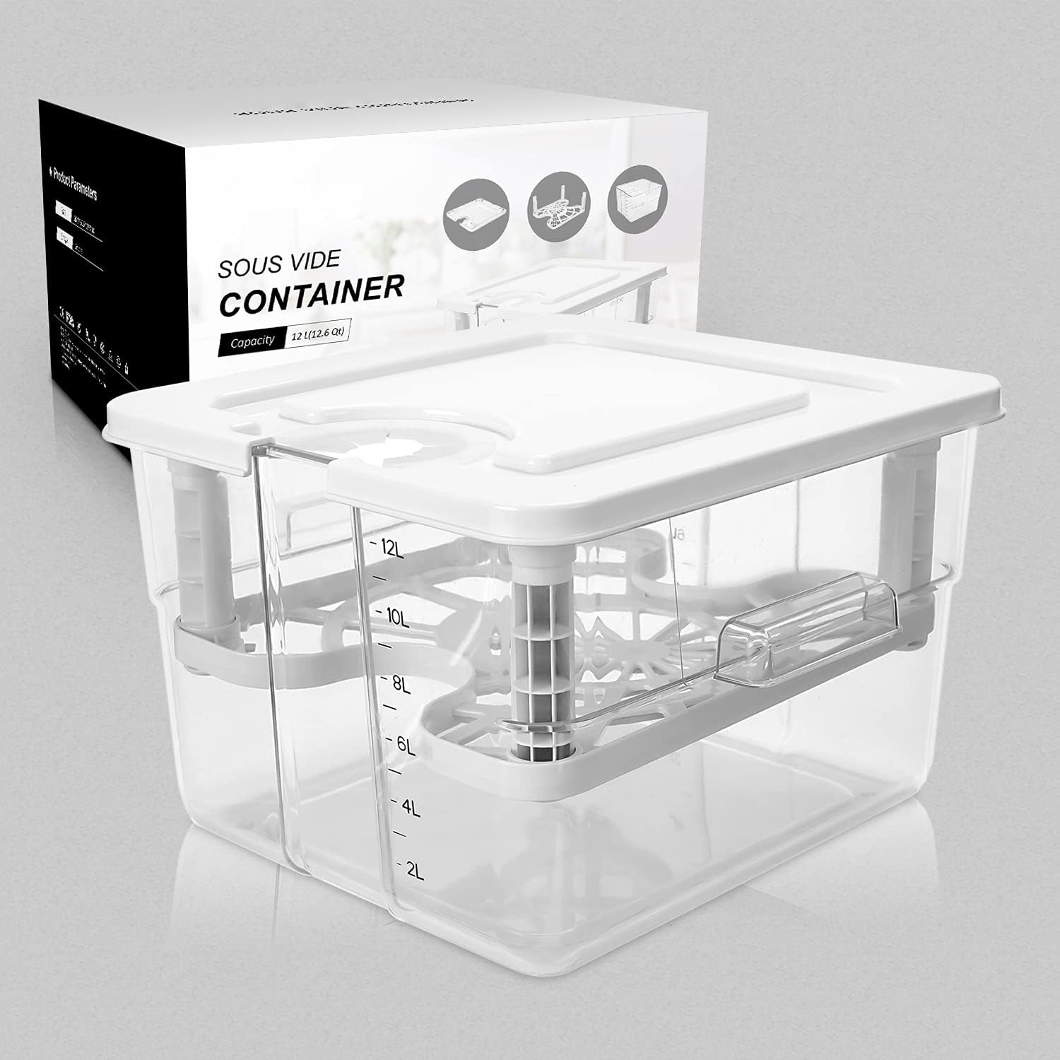 Sous Vide Contenitore Set 12L con Coperchio e griglia 7 in 1 per Roner Professionale Compatibile Varie Marche Contenitore Sous Vide Multifunzione Trasparente per Cottura a Bassa Temperatura