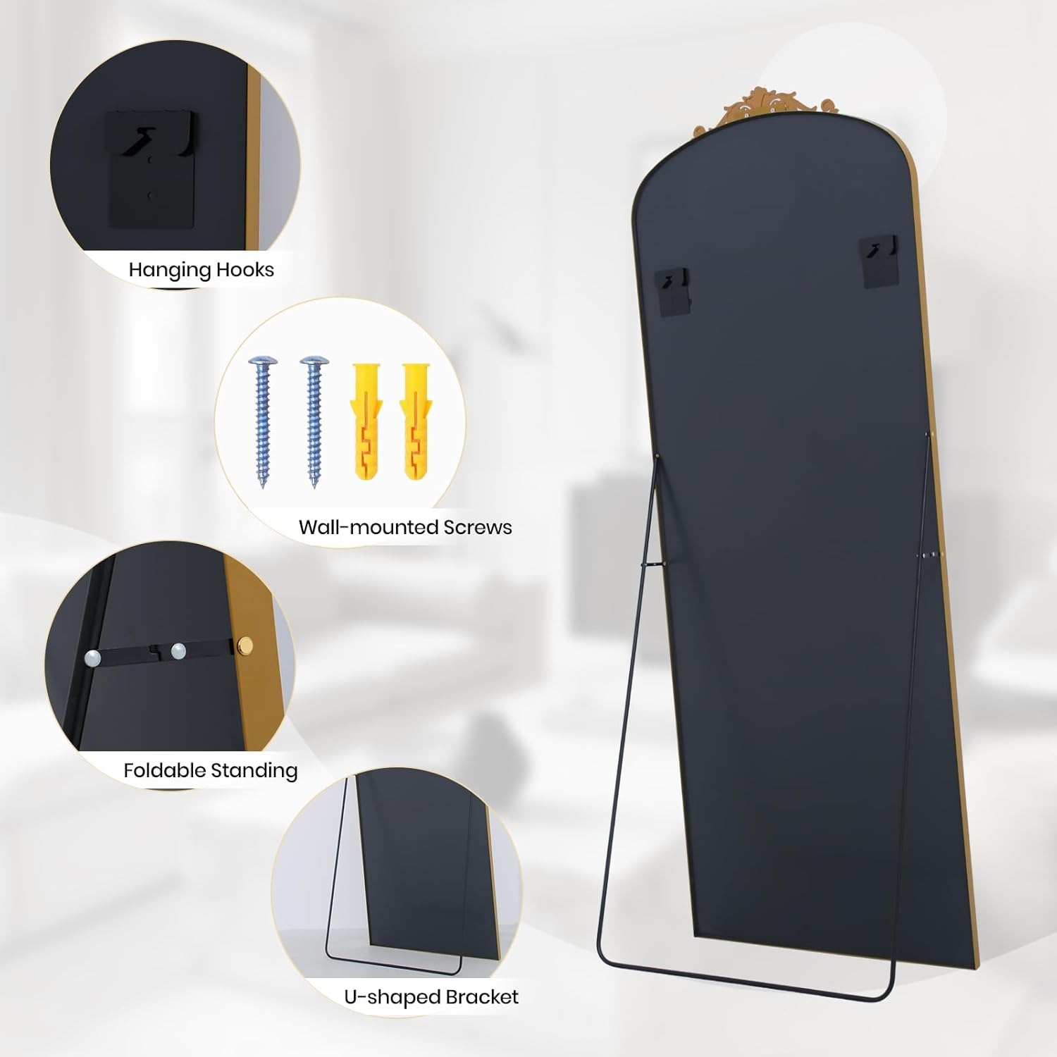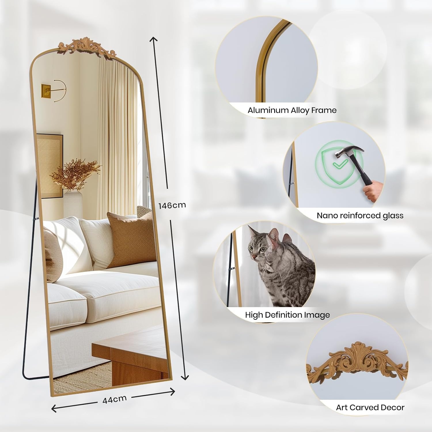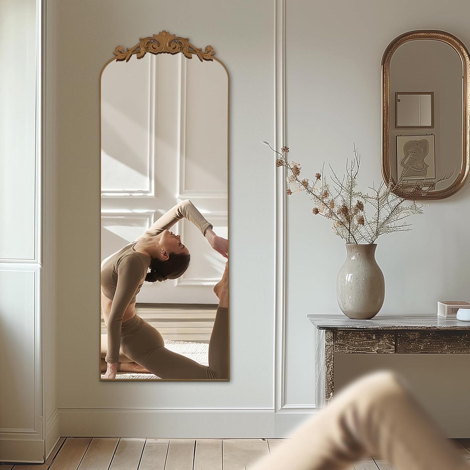 LunaMirror Filigree Specchio da appoggio, 162 x 52 cm, stile vintage, Sierlijke Gesneden Applicatie Retro Home Decor Specchio da parete per Woonkamer Slaapkamer Hal Entree, oro
