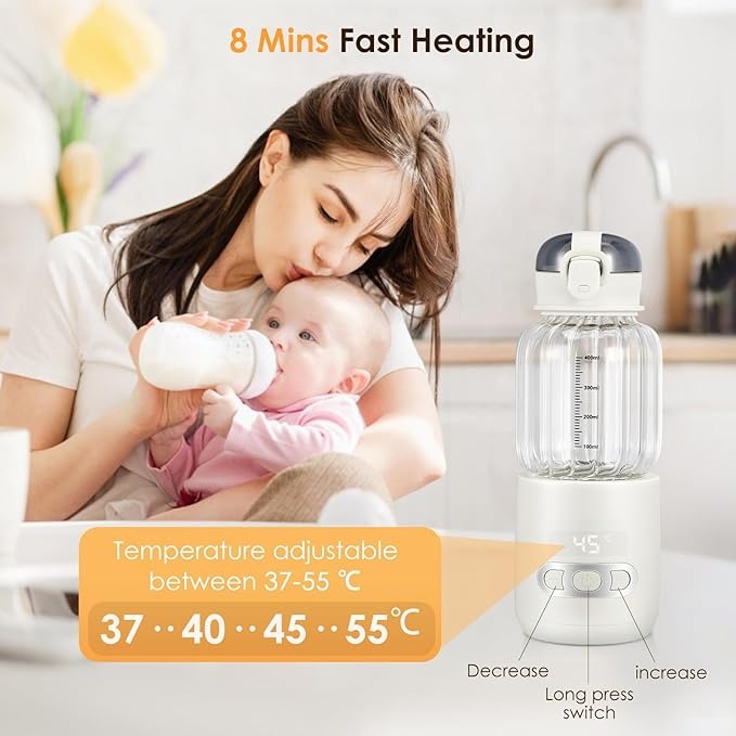 Scaldabraccia portatile, 400 ml, scaldabiberon per bambini, in viaggio, temperatura regolabile da 37 °C a 55 °C, riscaldamento rapido e controllo preciso della temperatura, ricaricabile tramite USB