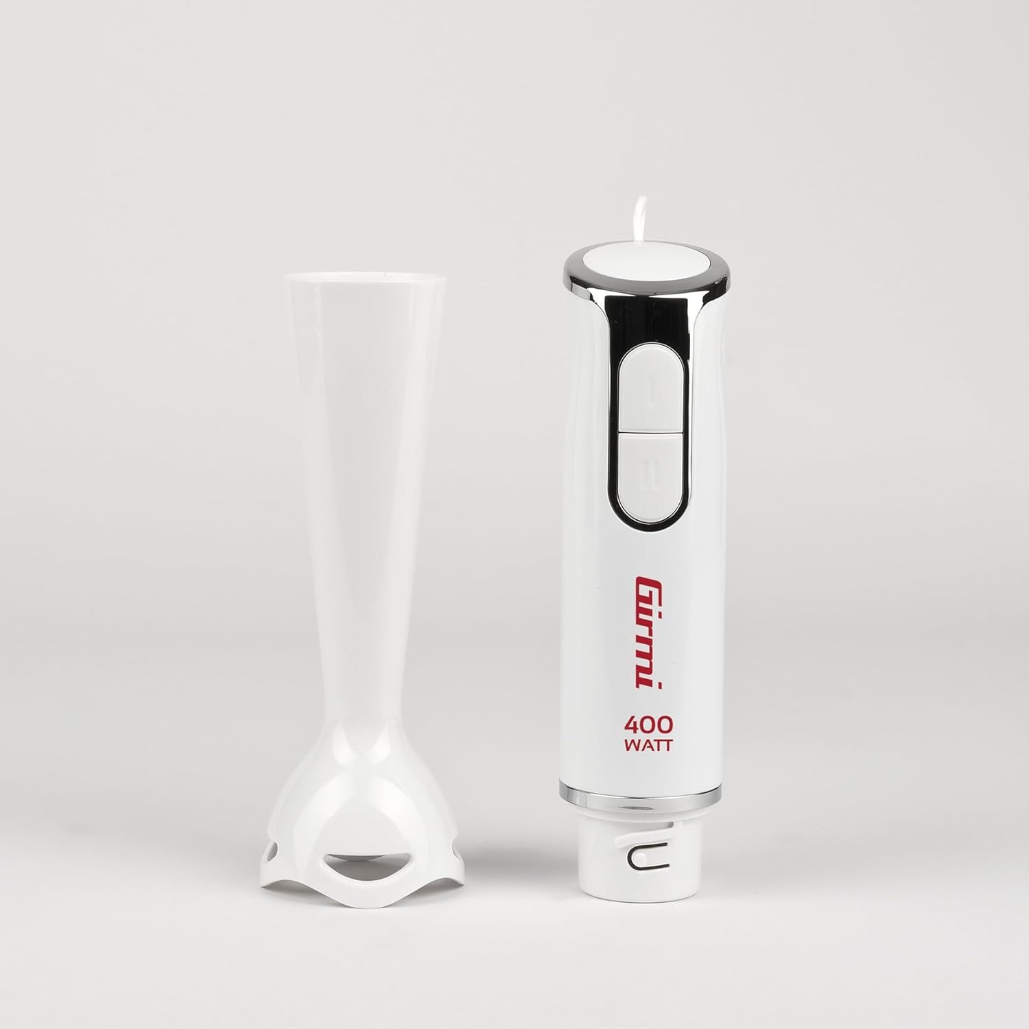 Girmi MX17 Mixer ad immersione con Kit, 3 in 1 frullatore-mixer-frusta, 400 W, Motore DC, 2 Velocità, Lame INOX, Misurino da 700cc incluso, Bianco