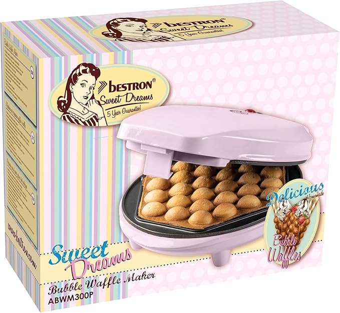 Bestron Piastra per Waffle Bubble, macchina per waffle Bubble per riempire con gelato, cioccolato o frutta, con spia di cottura e rivestimento antiaderente, 700 Watt, Colore: Rosa