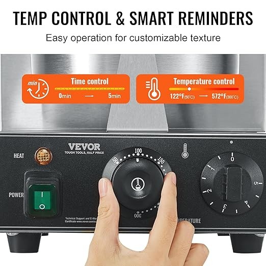 VEVOR Macchina per Coni Gelato Elettrica Commerciale, 1230 W, Stampo per Involtini Primavera in Acciaio Inox Antiaderente, con Controllo Temperatura Tempo, Maniglia, per Ristorante, Snack Bar