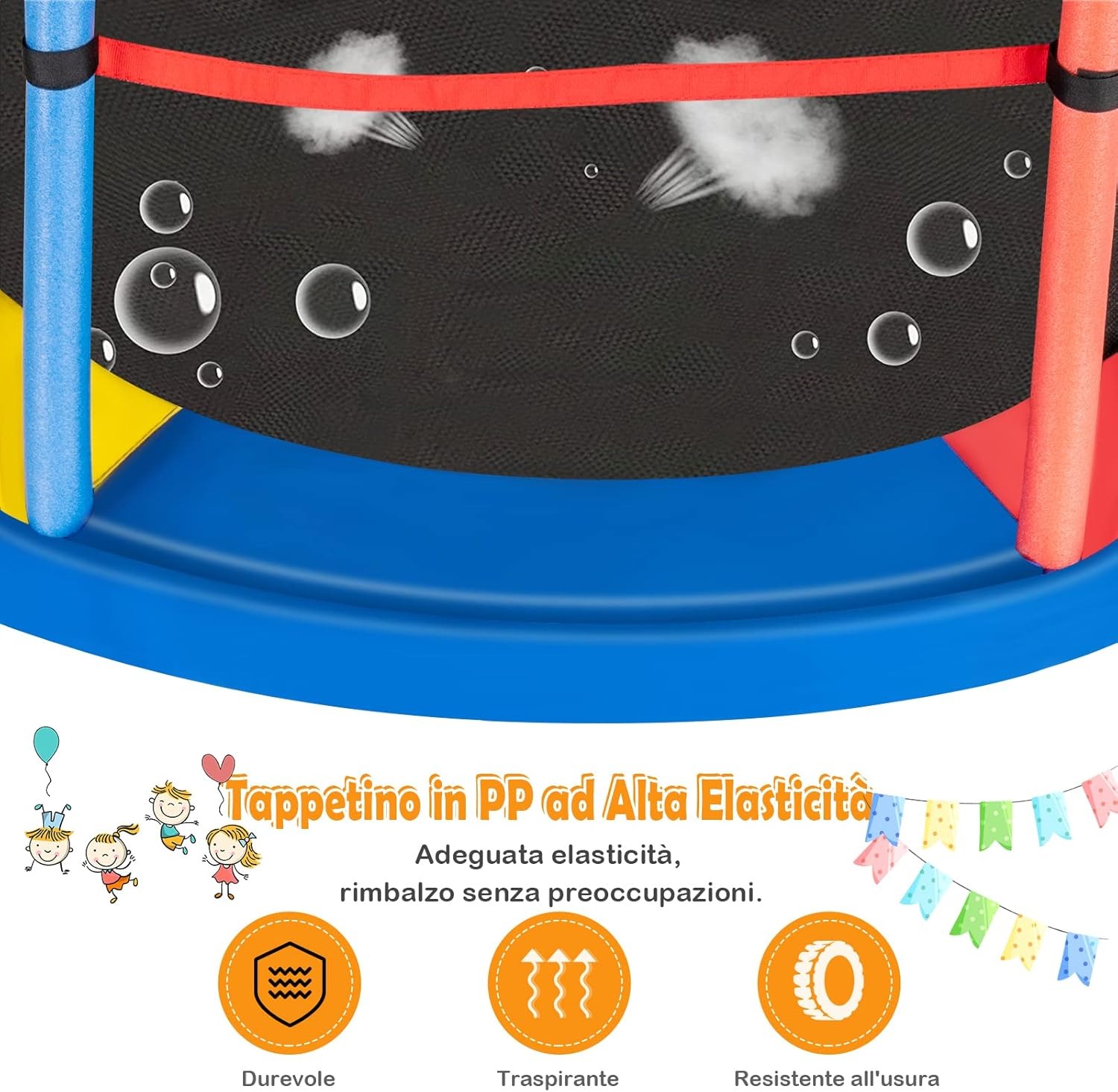 COSTWAY Trampolino Elastico Bambino in Acciaio, Tappeto Elastico Bambini da Esterno e da Interno, con Rete e Cusicnetti Antiscivolo