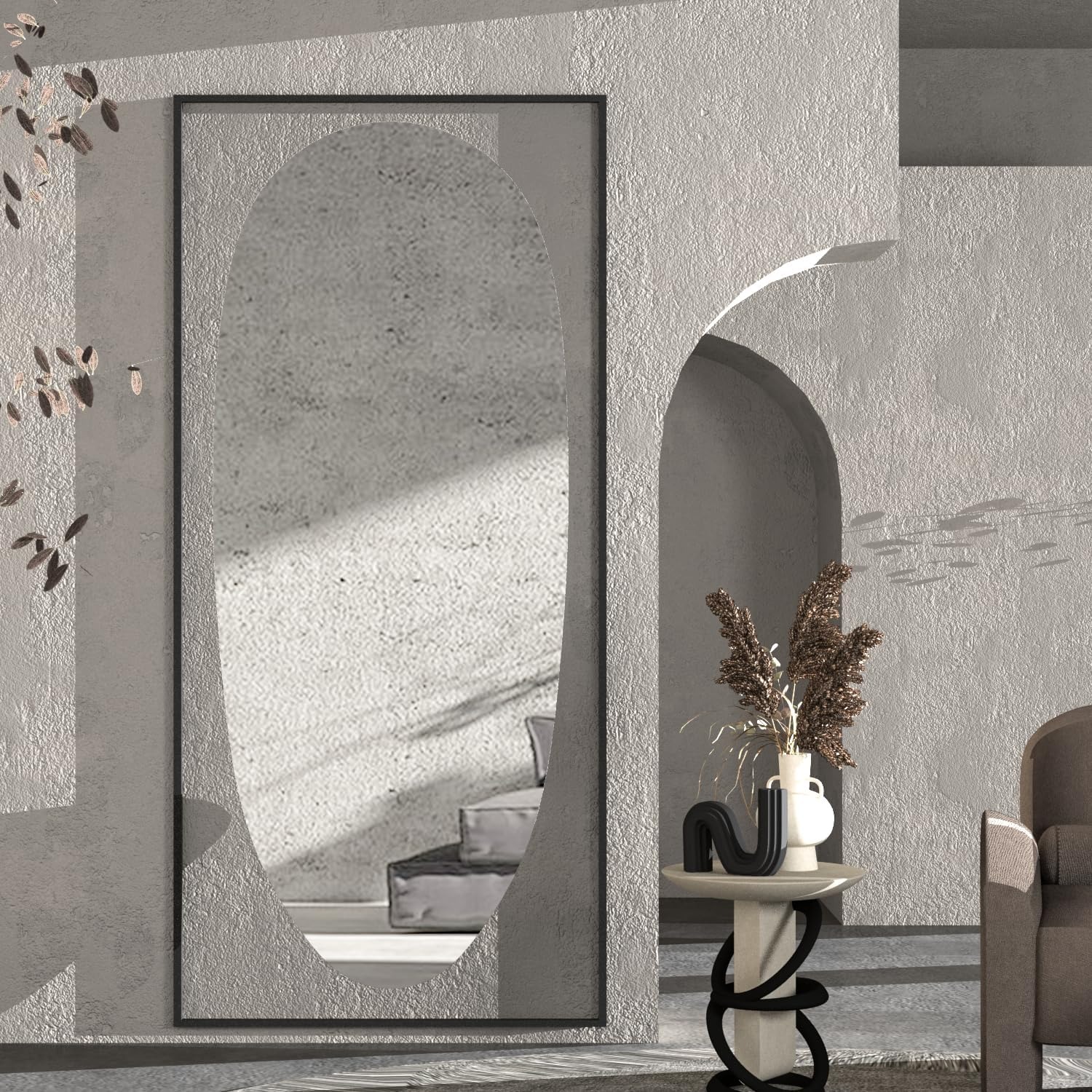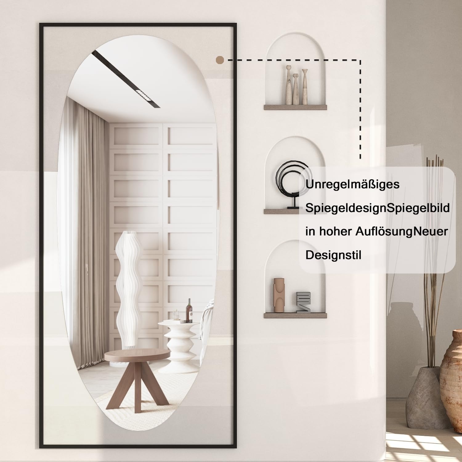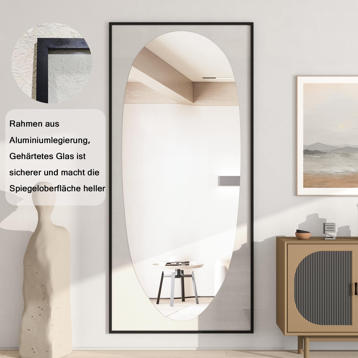Elemango Specchio da 165 x 60 cm a lunghezza intera, specchio da pavimento, grande per tutto il corpo, si appoggia contro specchio da parete, specchio equilibrato, camera da letto, specchio pe