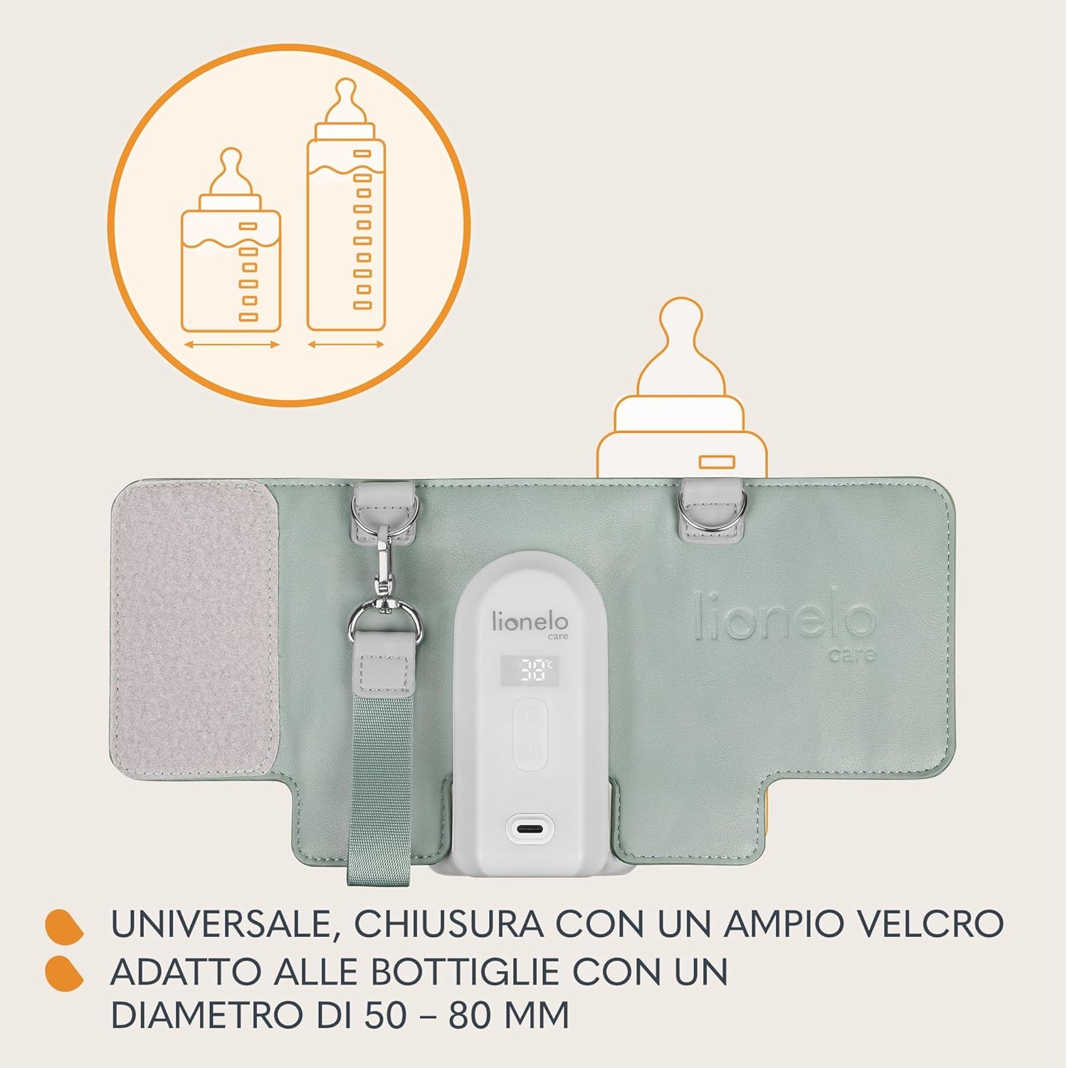 LIONELO Thermup Go Evo Scaldalatte Portatile per biberon per Neonati, Mantiene Liquidi caldi, 5 Temperature operative da 38 a 50°C Ricarica USB-C, Fino a 9 Ore di Funzionamento (Salvia Verde, EVO)