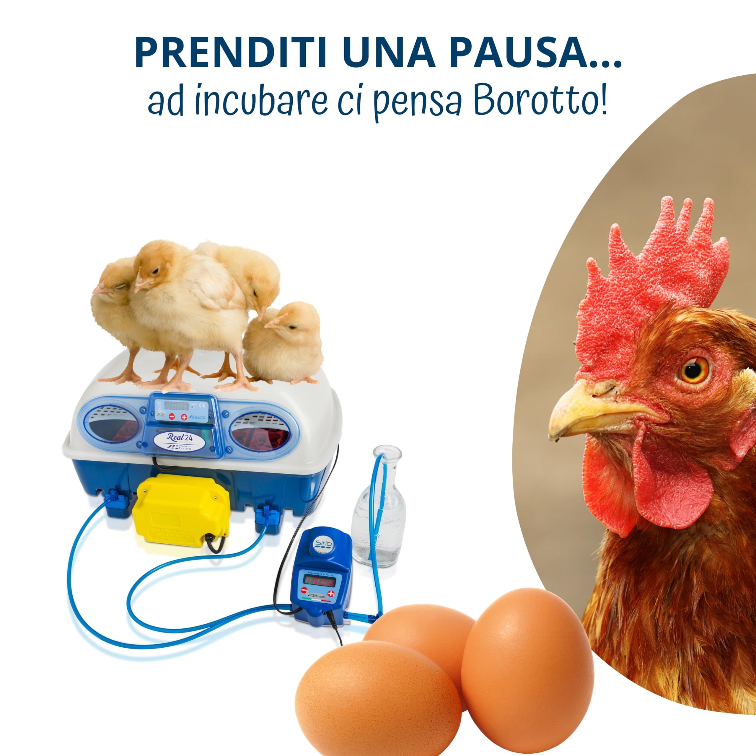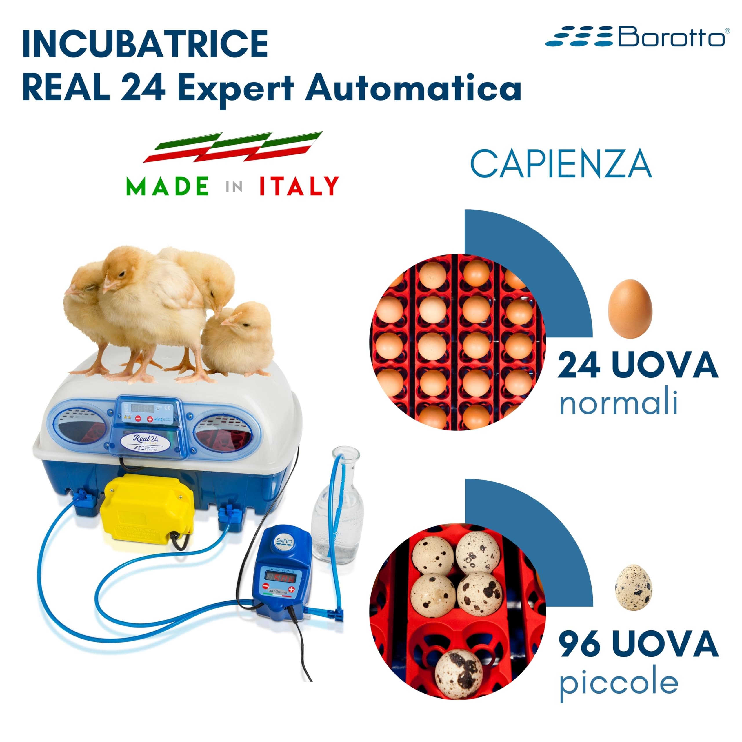 Borotto Real 24 | Incubatrice per Uova Automatica Professionale Brevettata per 24 Uova o 96 Piccole con Girauova Automatico e Controllo della Temperatura | Made in Italy