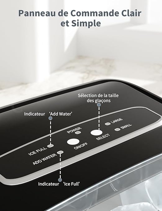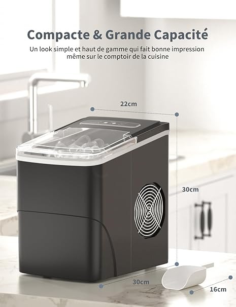 Macchina Ghiaccio 12KG/24h, 2.2L Macchina del Ghiaccio Casa Professionale, S/L Dimensioni, Pronto in 6-9 Minuti, Silenzioso, Ice Maker per Casa/Bar, Nero