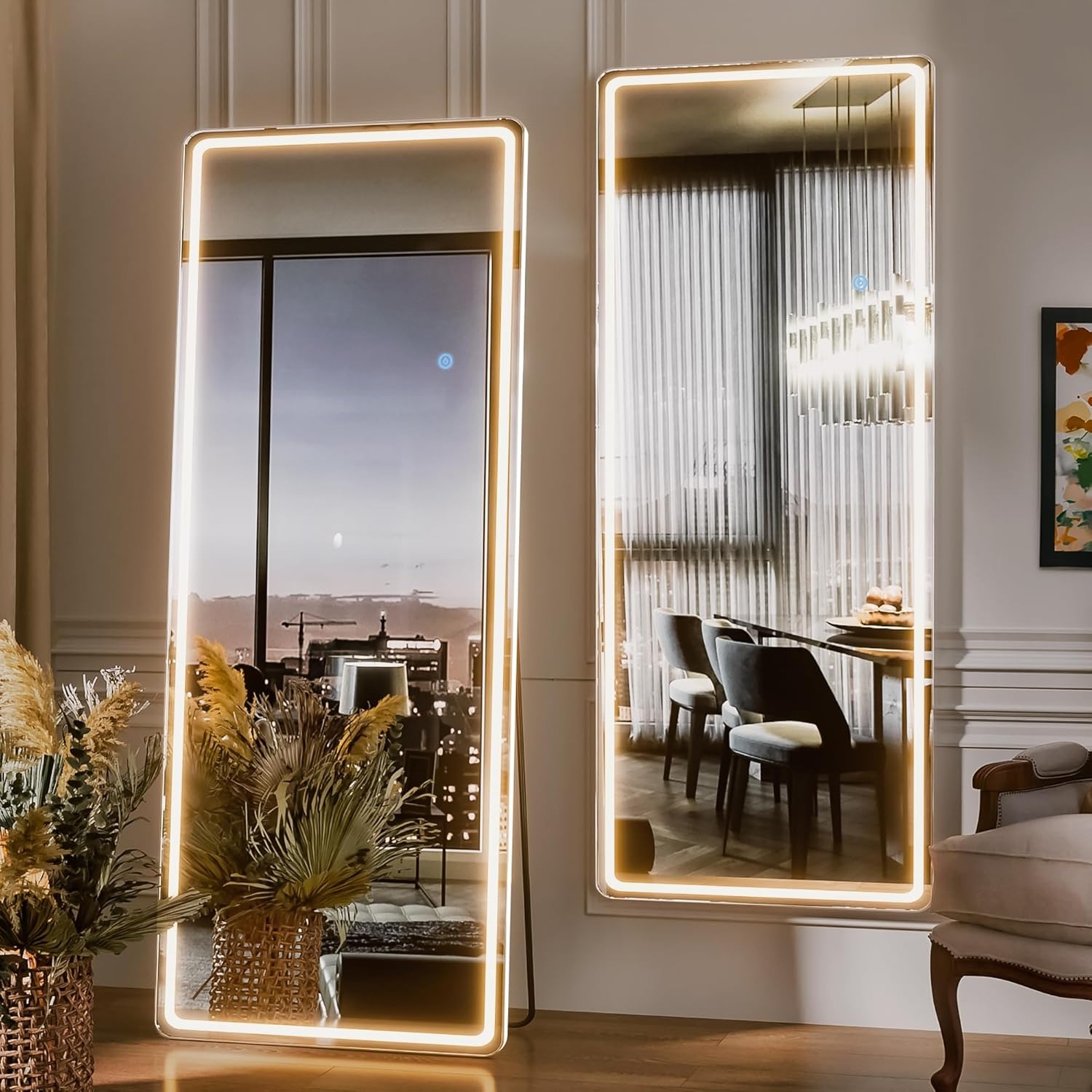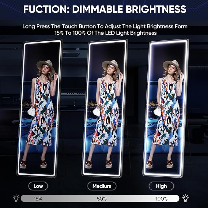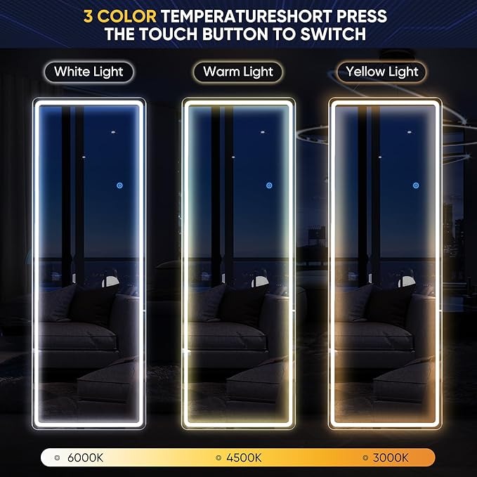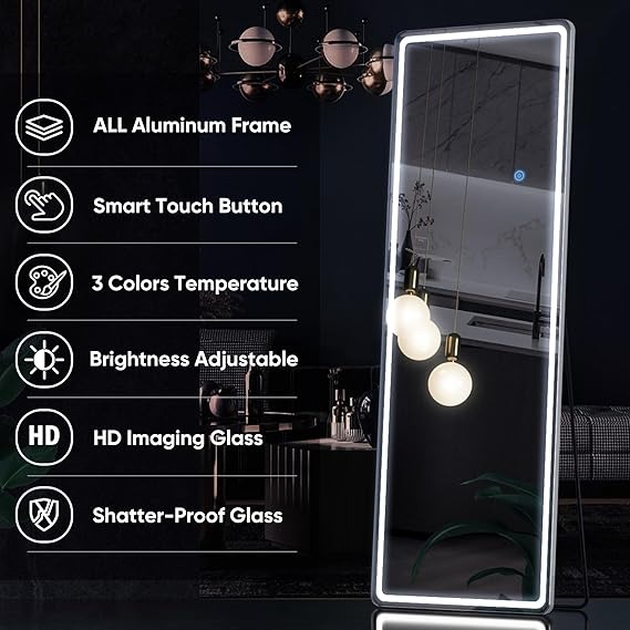 antok Specchio intero con illuminazione a LED, 160 x 50 cm, rettangolare a lunghezza intera, grande specchio da parete con vetro infrangibile e 3 colori di luce, specchio da pavimento per soggiorno