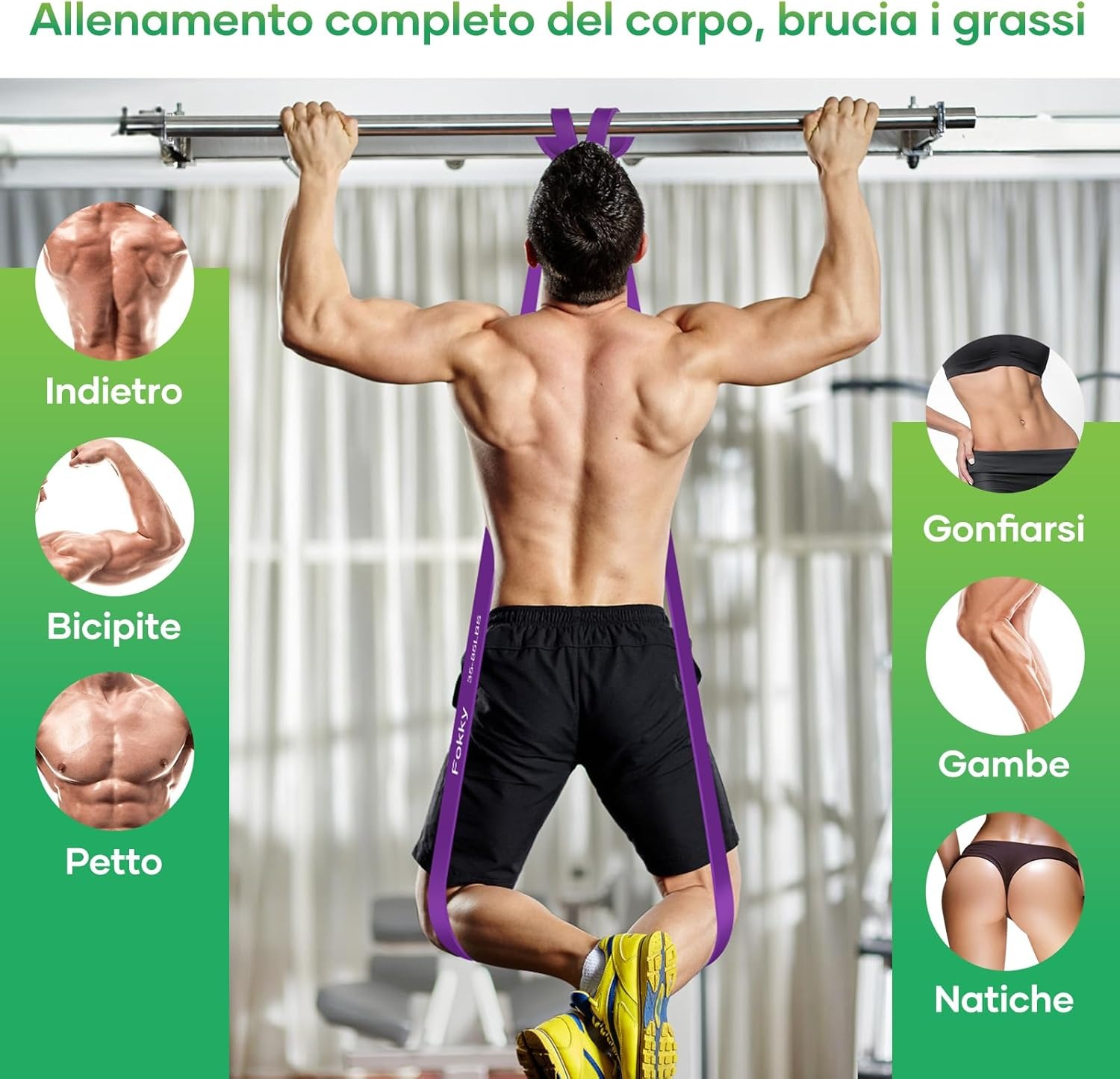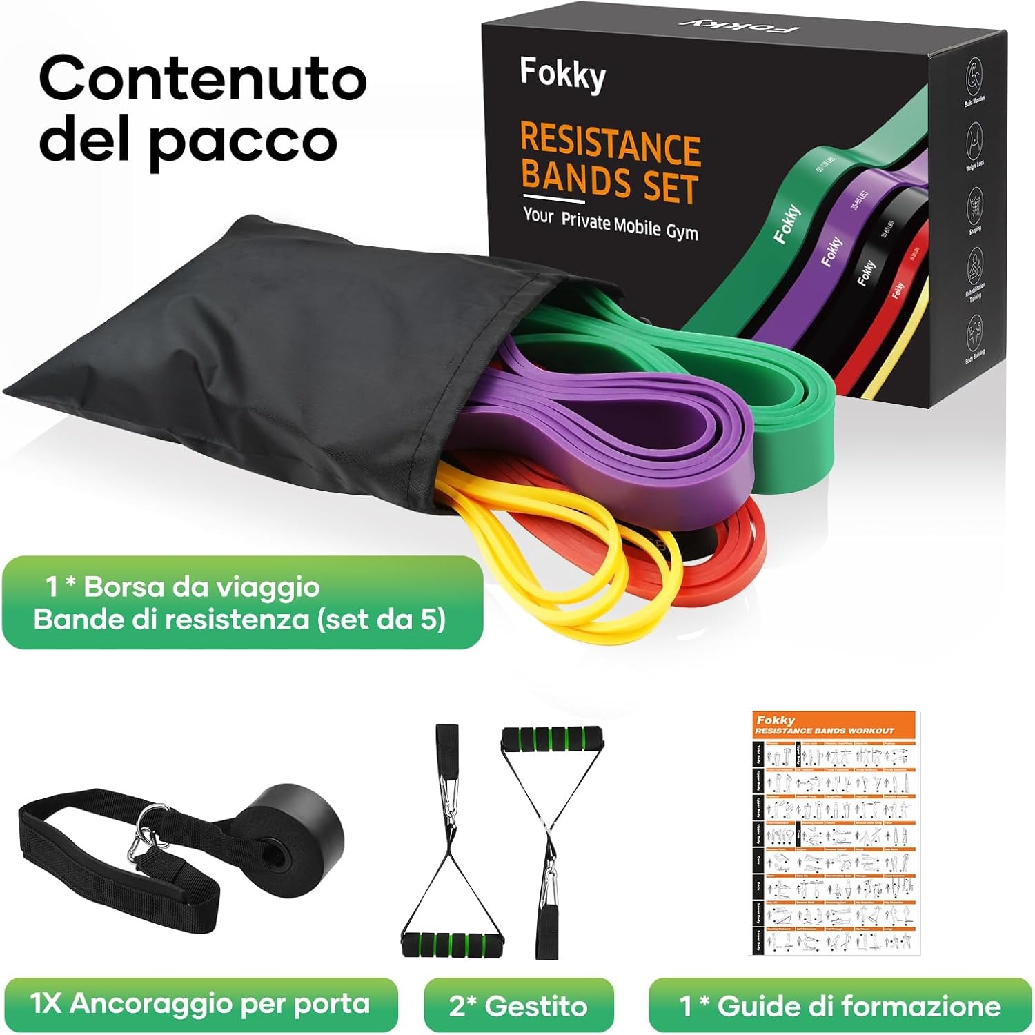 Fokky Elastici Fitness di 4 Livelli di Resistenza, Elastico Fitness con Ancoraggio Porta, Maniglie e Cover Protettiva, Elastici Palestra per Allenamento Stretching Powerlifting Resistenza Marca: Fokky