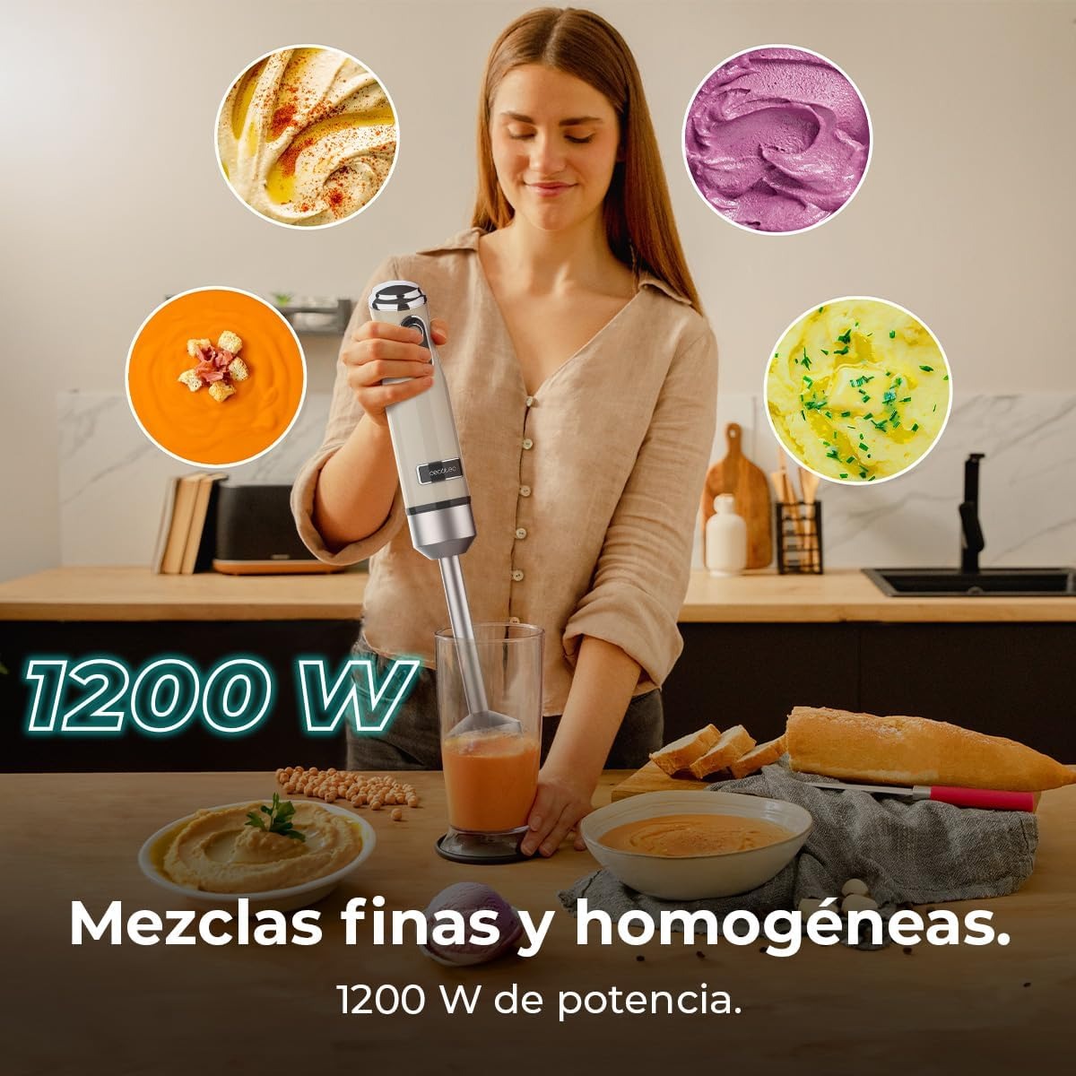 Cecotec Frullatore a Immersione Retro Power RetroRed 1200MAX. 1200W di Potenza, Lama a 4 Lame con Rivestimento in Titanio Nero, 2 Velocità, Bicchiere da 0,5L, Design Vintage