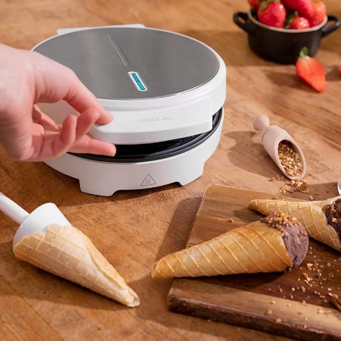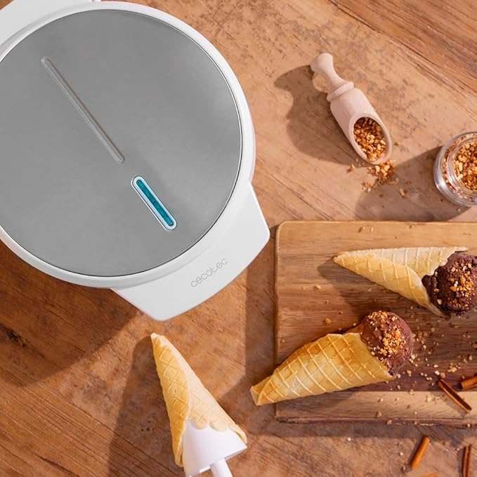 Cecotec Waffle Iron Fun rotoli per waffle da 1000 W, rivestimento antiaderente, finiture in acciaio inossidabile, ideale per preparare coni e cialde gelato