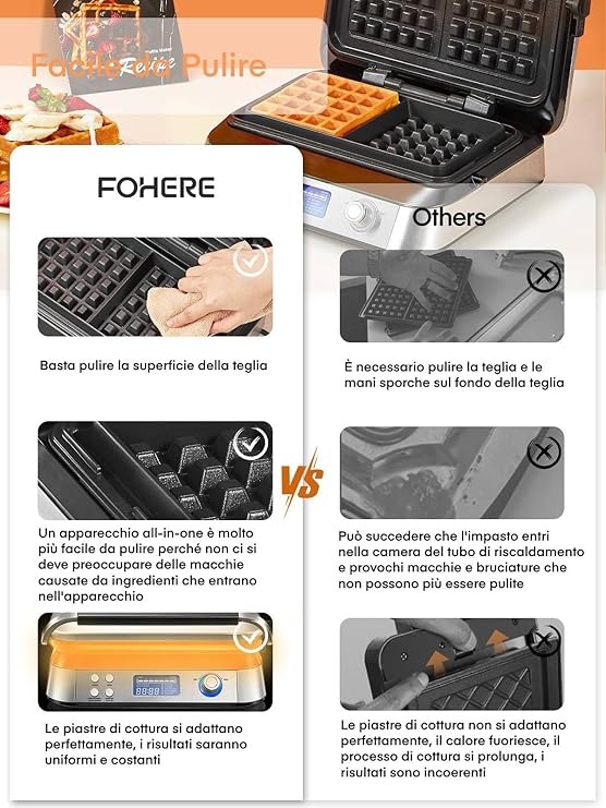 Piastra per Waffle Belga 1600 W, Smart Doppia Waffle pro con Display LED, 5 Programmi Diversi, 7 Temperatura Regolabile, Macchina per Waffle Elettrica Antiaderente (D'argento) [Classe di efficienza energetica A+++]