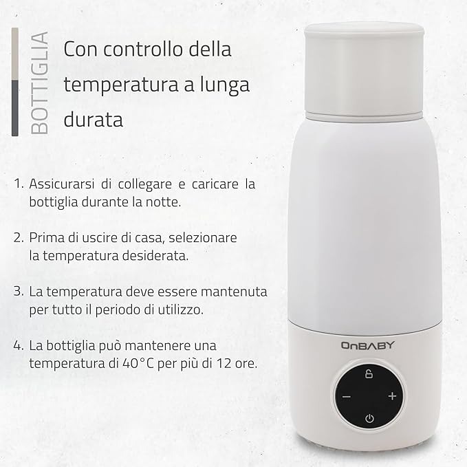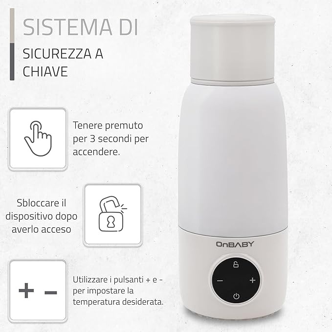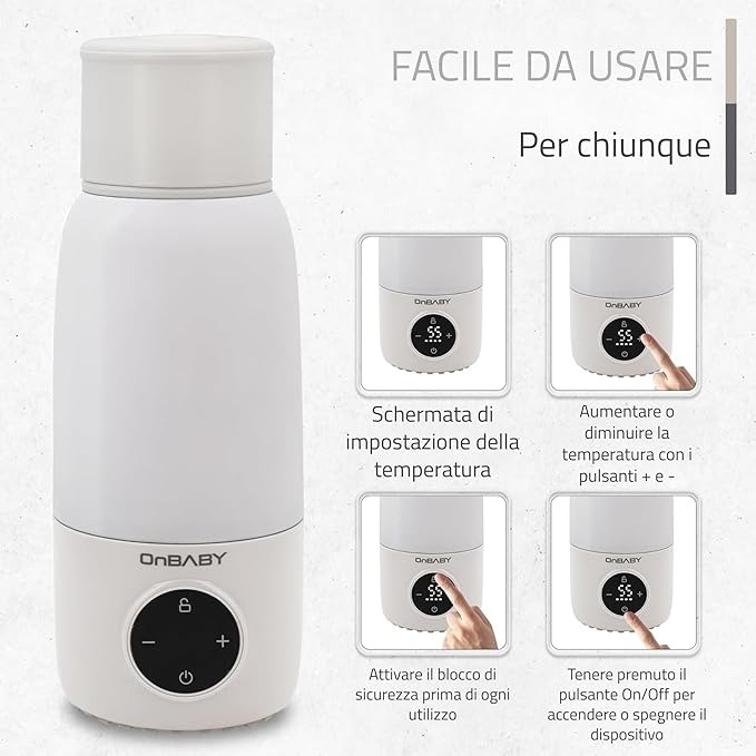 ONBABY Scaldabiberon Elettrico Portatile - Scaldabiberon da Viaggio per Latte e Acqua, Facile da Trasportare - Temperatura Regolabile, Ricarica USB