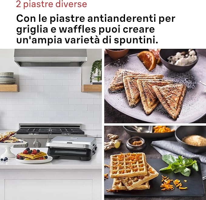 Braun SnackMaker 5 SM5005, Tostapane con Piastre per Sandwich e Cialde, Waffle Maker con Piastre in Alluminio Pressofuso, Piastre Rimovibili e Vassoio di Raccolta per Lavastoviglie, 800W, Argento