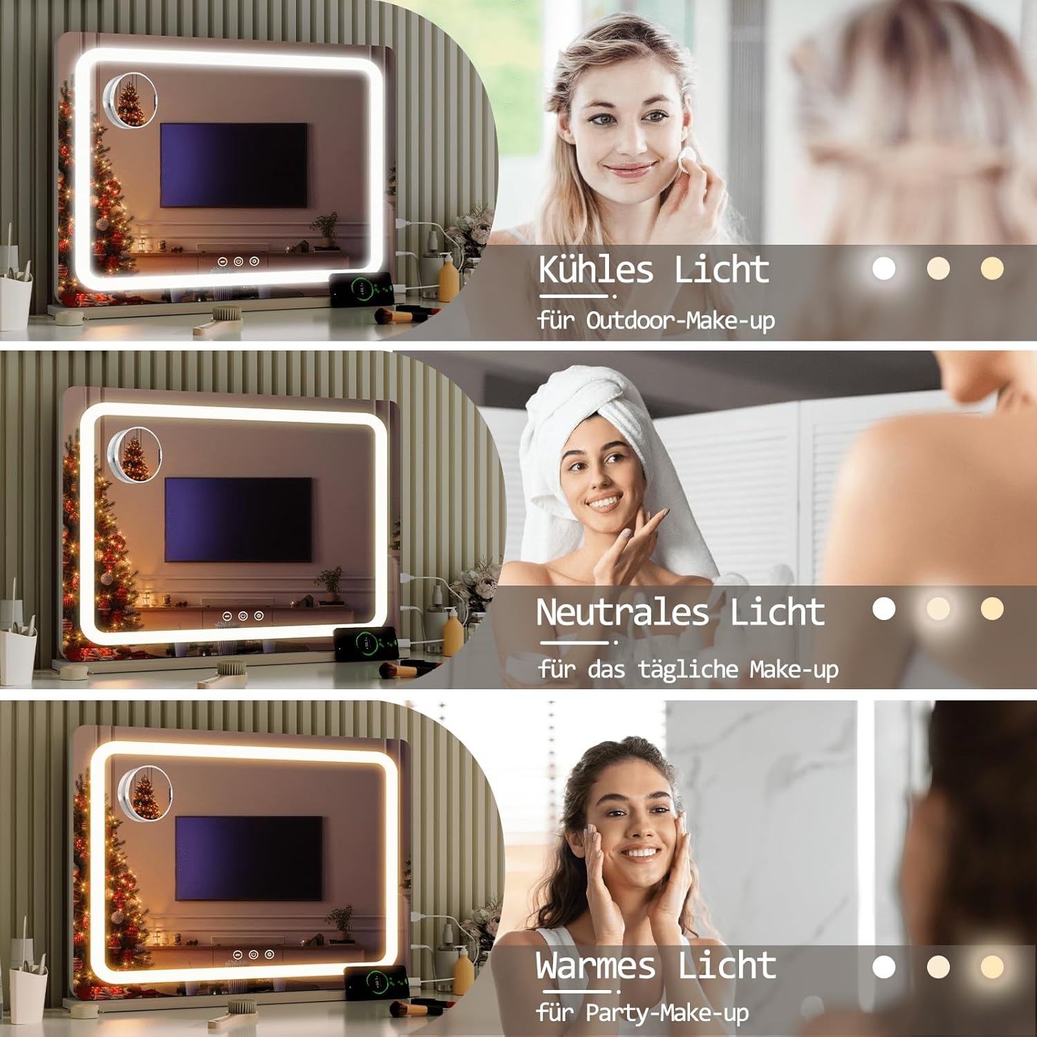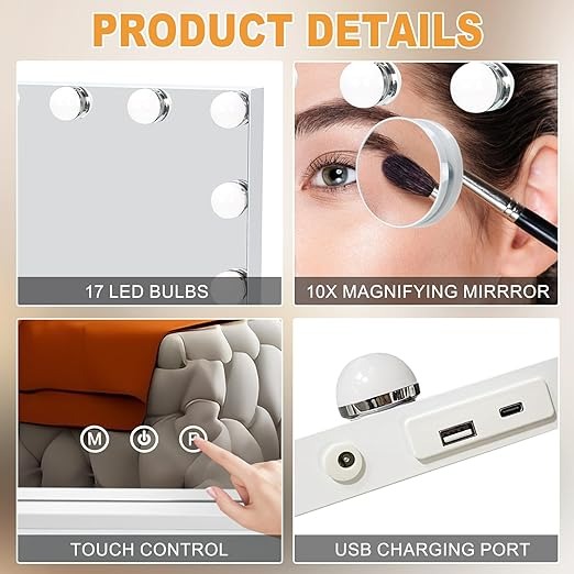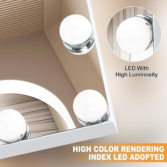 Teousev Hollywood Specchio Trucco con luci, Specchio Trucco con 14 lampade LED, Illuminato Specchio da Tavolo con 10x ingrandente, 50x40cm