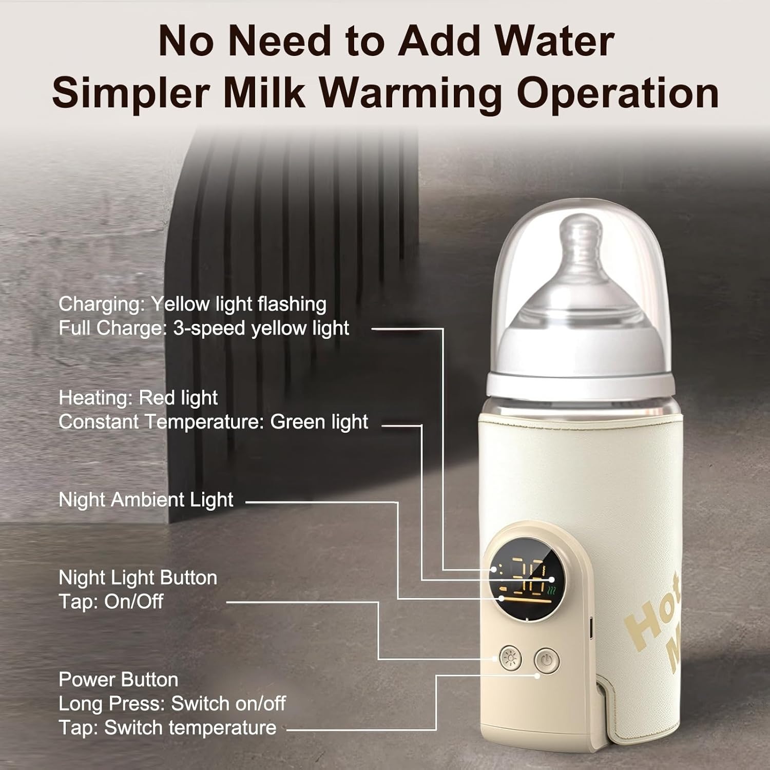 scaldabiberon per bambini, portatile, con display a LED, riscaldamento rapido e caldo 48 ore, 6 temperature regolabili, scaldabagno USB per la casa e i viaggi