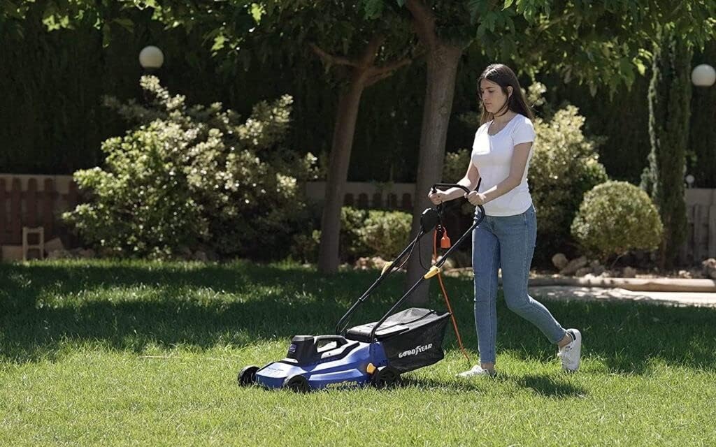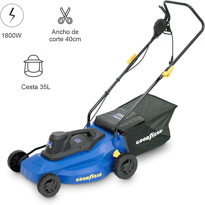 Goodyear – Rasaerba elettrico da 1800 W. Motore 3200 giri/min 210-230 V. Rasaerba a filo con larghezza di taglio 40 cm. 71x48x29 cm. Sacco di raccolta da 35 litri