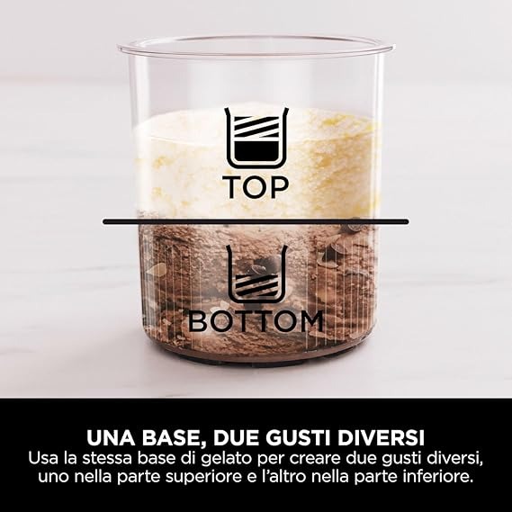 Ninja CREAMi Gelatiera Deluxe con 2 Vasetti, 10 Funzioni, Produce Gelato, Sorbetti, Yogurt, Frullati, Granite e altro ancora, Formato Famiglia, Opzione 2 Gusti in 1 Vaschetta, Argento, NC502EU