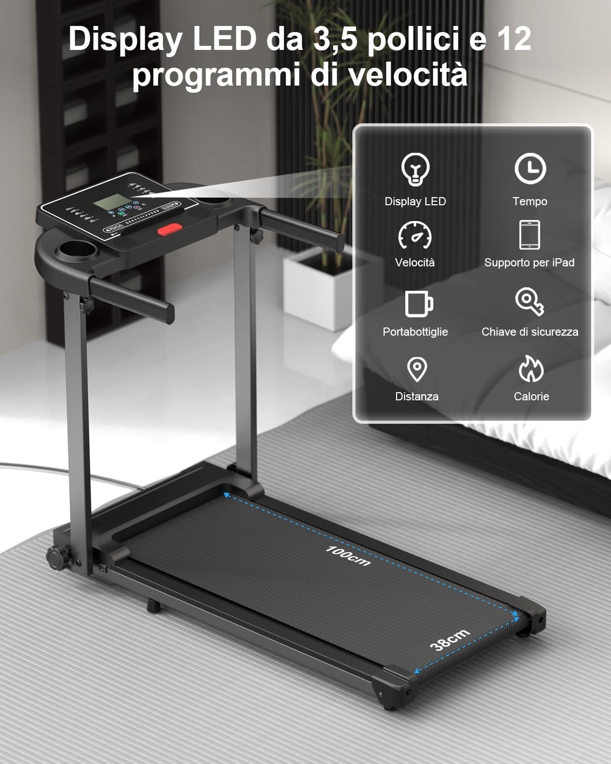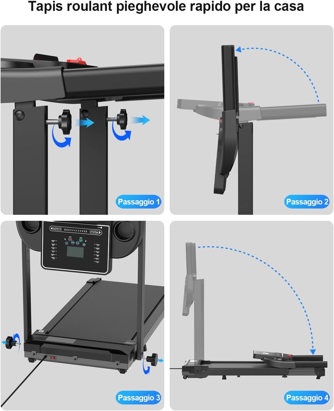 Tapis Roulant Elettrico Salvaspazio Pieghevole - Magnetico Tapirulan da Casa Walking Pad Treadmill for Home Use Manubrio Camminare Tappeto Portatile Scrivania Professionale Tappeto 10 km/h