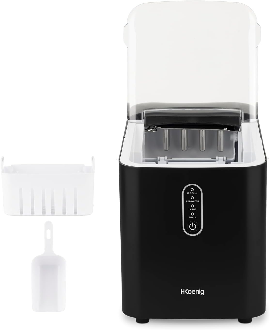 H.Koenig Macchina del ghiaccio KUB14, 12 kg in 24h, 2 formati di cubetti, automatico, elettrico, portatile, silenzioso, 1 l, cubetti pronti in 6 minuti, paletta