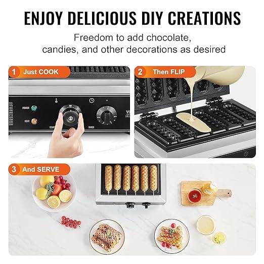 VEVOR Waffle Stick Maker Commerciale, 6 Pezzi 1500W Macchina Waffle Antiaderente in Acciaio Inox per Hot Dog di Mais con Controllo Temperatura Tempo, Maniglia, per Ristorante Panetteria Snack Bar