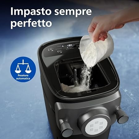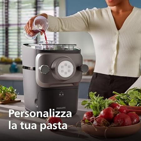 Philips Serie 7000 Macchina per la Pasta - Tecnologia ProExtrude, Pesatura Automatica, 8 Trafile, Impasto Perfetto, Facile da Pulire, Fino a 8 Porzioni, Nero (HR2665/93)