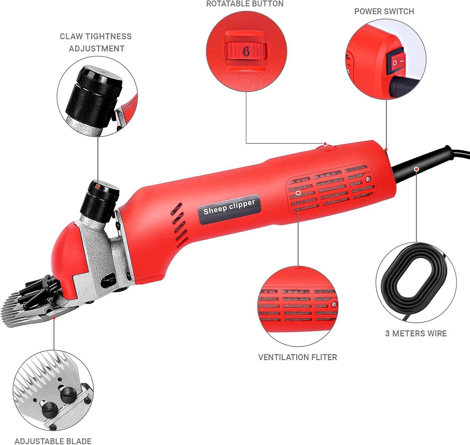 Sinbide 690W Tosatrice Elettrica Professionale per Cavalli, Tosatrice Professionale Tosatura per Pecore Efficiente Risparmio di Lavoro,per Lana di Pecore, Montoni e Capre (Rosso)
