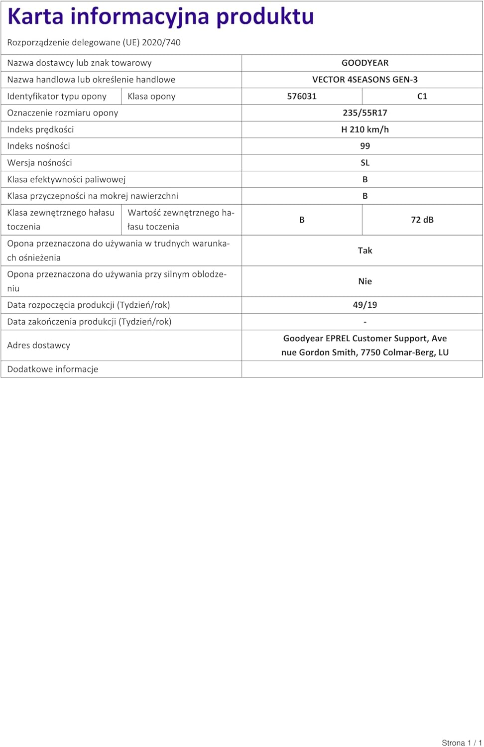 Goodyear 79303 Tyre 225/55 R17 101Y Vector 4Seasons Gen-3 XL