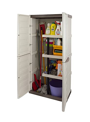 Dmora Armadio da Esterno Marchin, Mobile Balcone Multiuso, Armadietto Outdoor 2 Ante, 100% Made in Italy, Beige e Marrone, Finitura Righe, 70x39h165 cm, Polipropilene, Jolanda, 70 x 39 x 165, 15 unità : Amazon.it: Casa e cucina