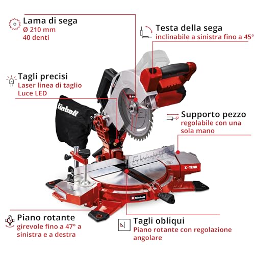 Einhell Troncatrice TE MS 18/210 Li Solo Power X Change (Li Ion, 18 V, 3000/min, lama in metallo duro, senza batteria e caricabatteria) : Amazon.it: Fai da te