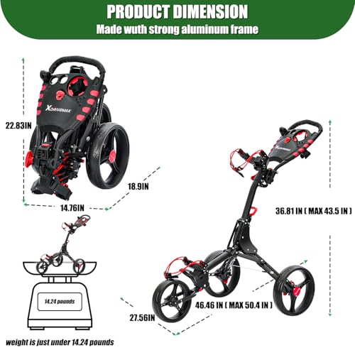 XDriveMax GC408 Carrello da golf pieghevole a 3 ruote, leggero, per mazze da golf e sacca da golf, con portabicchieri e scomparto portaoggetti (rosso) : Amazon.it: Sport e tempo libero