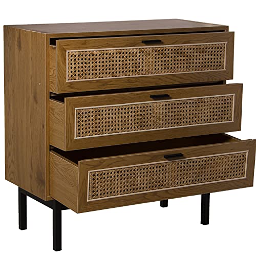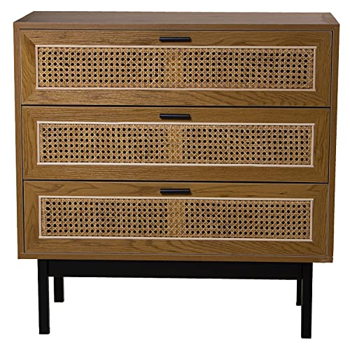 DRW Cassettiera con 3 cassetti in Legno MDF, Vimini e Metallo in Naturale e Nero 80x35x80cm, estandar : Amazon.it: Casa e cucina