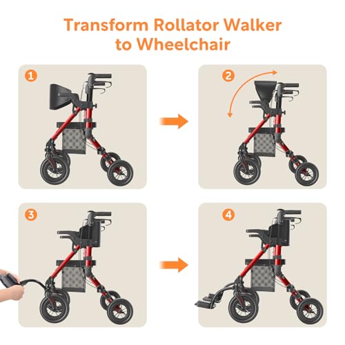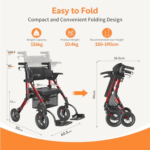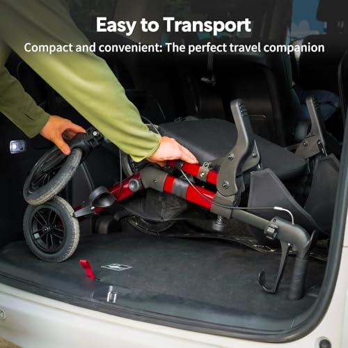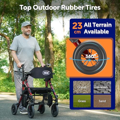 VOCIC Deambulatore per sedia a rotelle 2 in 1, pieghevole e leggero, con sedile, pneumatici in gomma per esterni, per tutti i terreni, leggeri con tasca a rete, in alluminio, colore rosso : Amazon.it: Salute e cura della persona