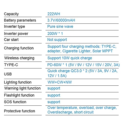 TIM LI Generatore Portatile da 222 Wh 60000 mAh Alimentazione di Emergenza di Backup CPAP Onda Sinusoidale Pura per Campeggio, Uso Domestico, Camper, All'aperto,220V EU Plug : Amazon.it: Giardino e giardinaggio