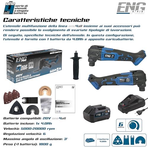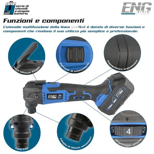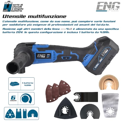 Utensile multifunzione Linea professionale a Batteria ONE4ALL 20V Velocità regolabile Max 20000 rpm Accessori, 1 Batteria 4.0Ah e Caricabatteria inclusi ENG PRO : Amazon.it: Fai da te