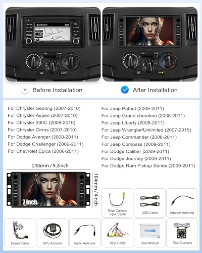 CAMECHO Autoradio Android 13 con Navigatore GPS per Ram Jeep Wrangler JK Dodge Challenger, Stereo 2 Din con Schermo da 7 Pollici Bluetooth RDS/FM MirrorLink e USB Telecamera Posteriore : Amazon.it: Elettronica