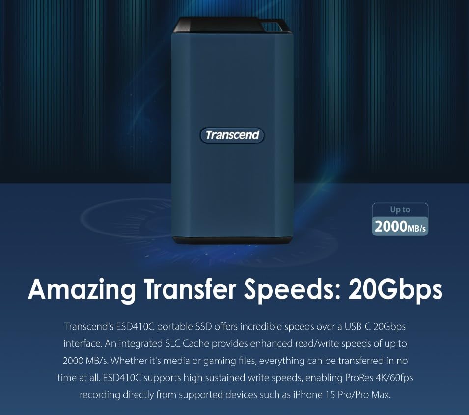 Transcend SSD Portatile ESD410C 2TB USB Typ2 C 20 Gbit/s – TS2TESD410C : Informatica